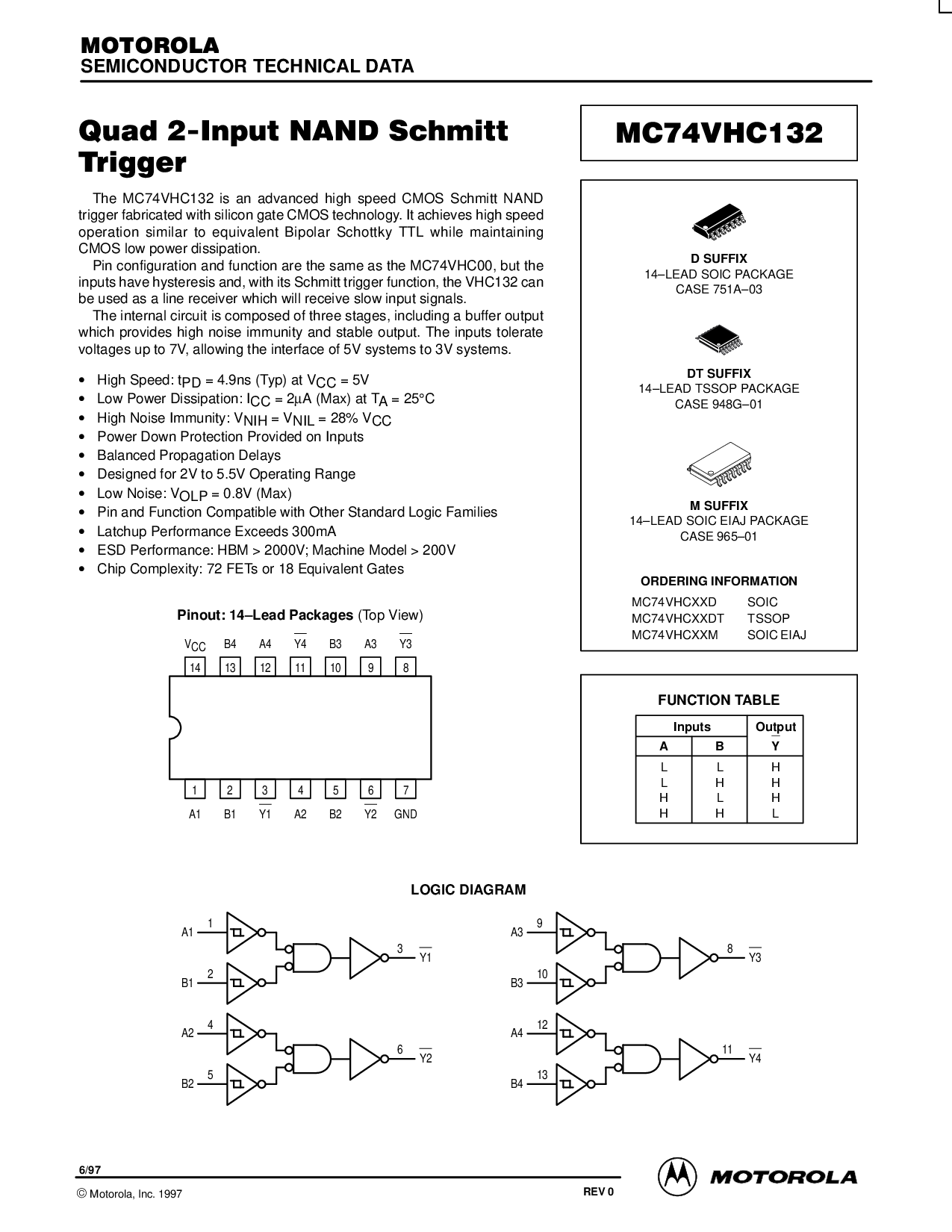 这 mc74vhc132 是 一个 高级 高 速度 cmos 施密特 与非