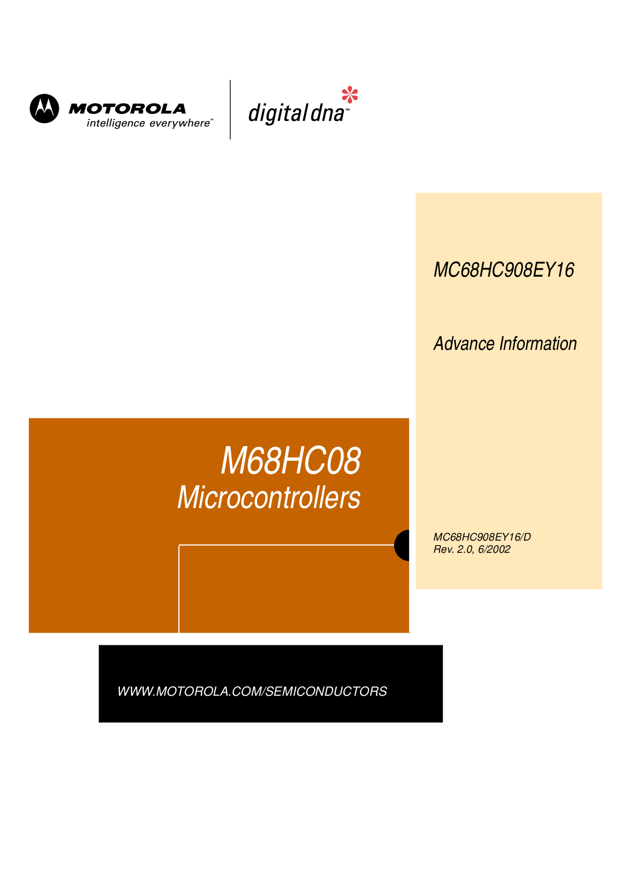 www.摩托罗拉.com/半导体 M68HC08 微控制器 mc68hc908ey16/d rev. 2.0, 6/2002 MC68HC908EY16 预付款 信息 | |
