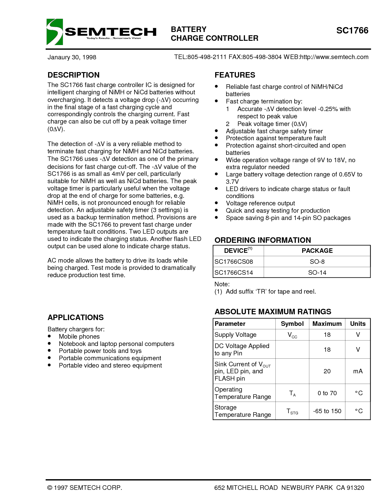 电话:805-498-2111 传真:805-498-3804 web:http://www.semtech.com