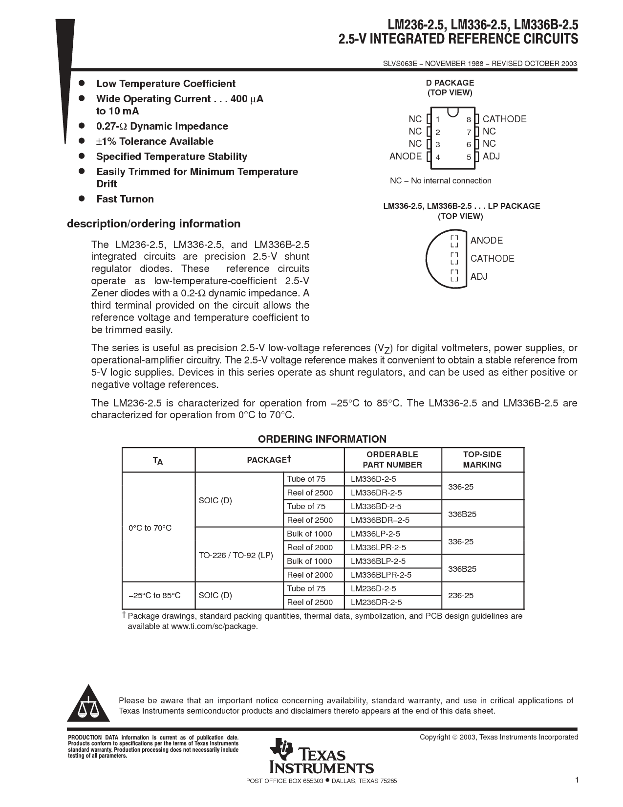 lm336-2.5, lm336b-2.5 . . . lp 包装