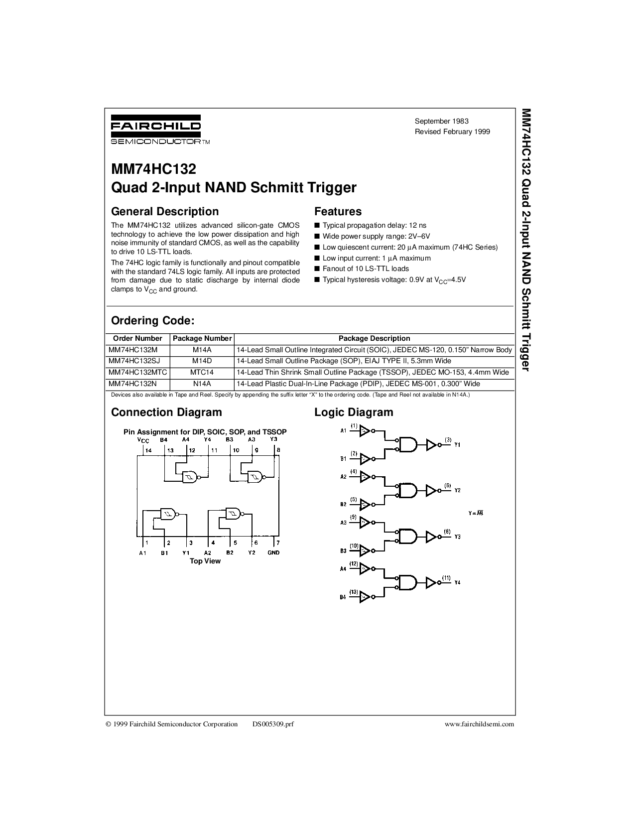 MM74HC132MTC MTC14 14-铅 薄 收缩 小 大纲 包装 (tssop), 电子元件工业联合会 mo-153, 4.4mm 宽