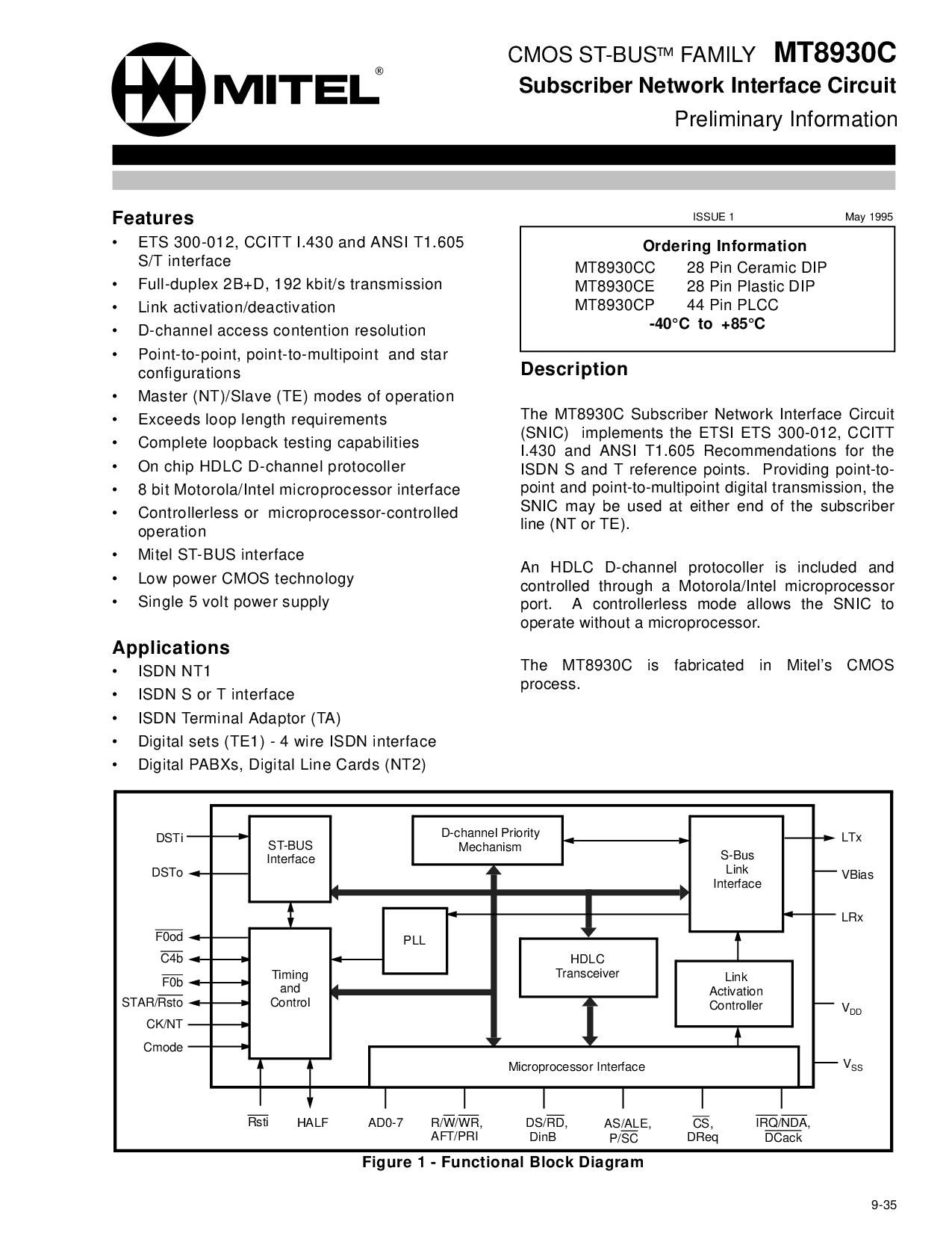 这 mt8930c 是 预制 入点 mitel’s cmos