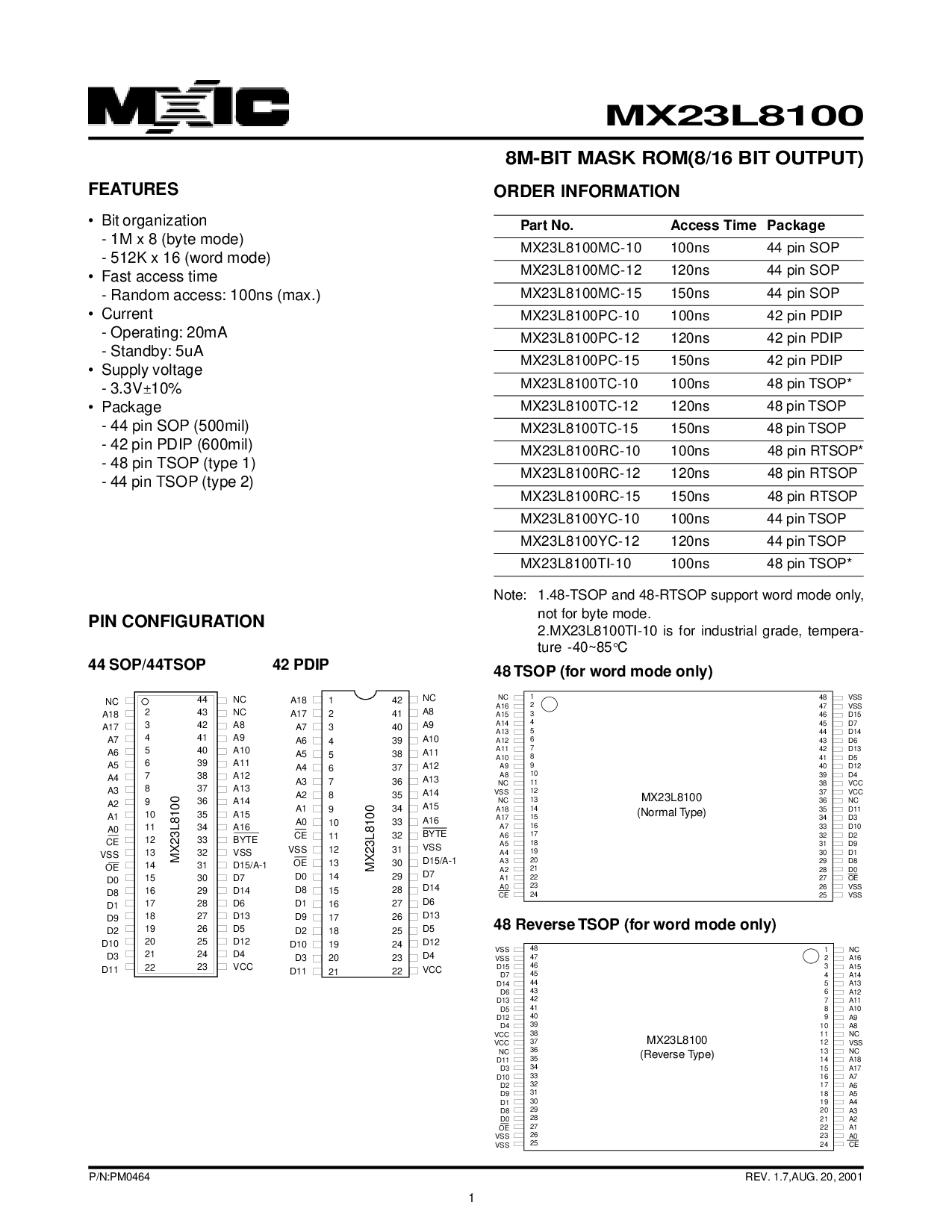 mx23l8100rc-15 150ns 48管脚 rtsop