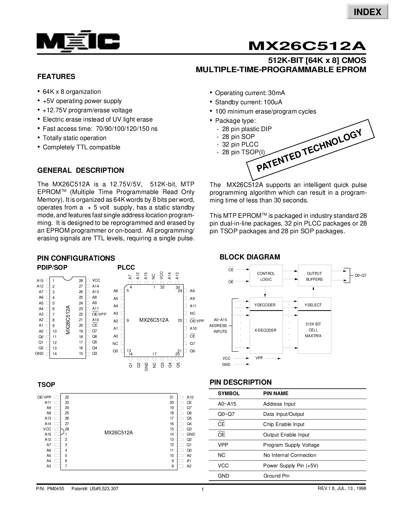 这 mx26c512a 是 一个 12.75v/5v, 512k-有点, mtp