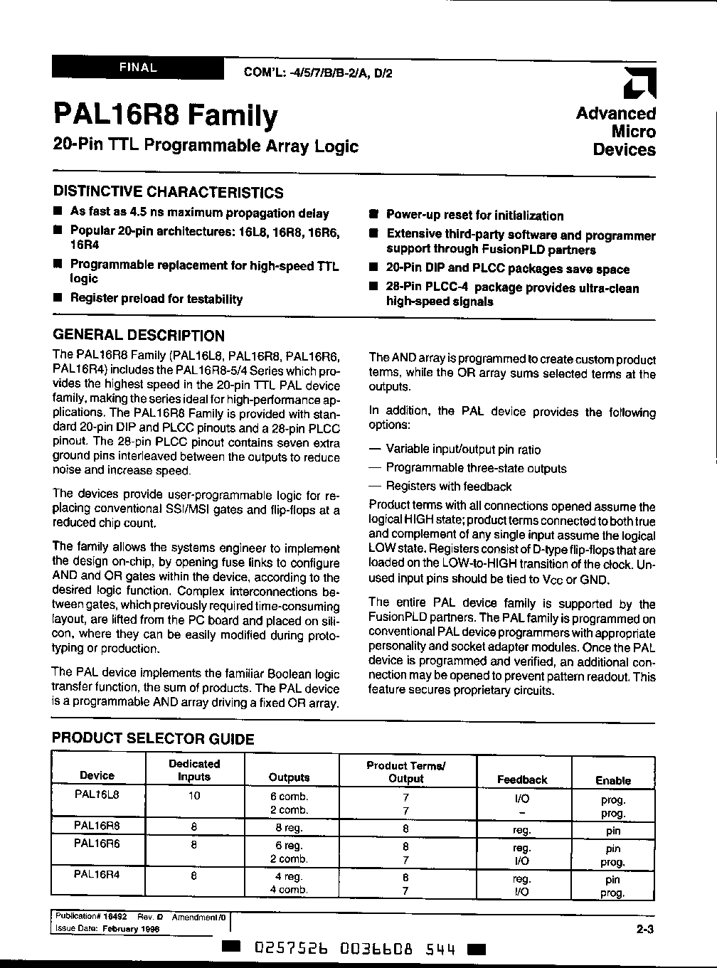 20-PIN TTL PROGRAMMABLE ARRAY LOGIC