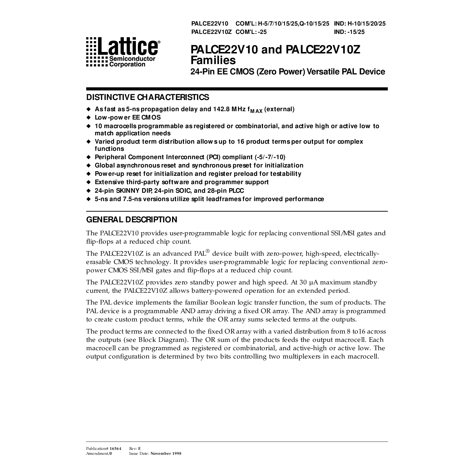 这 palce22v10z 提供 零 备用 电源 和 高 速度. 在 30 µa 最大值 备用
