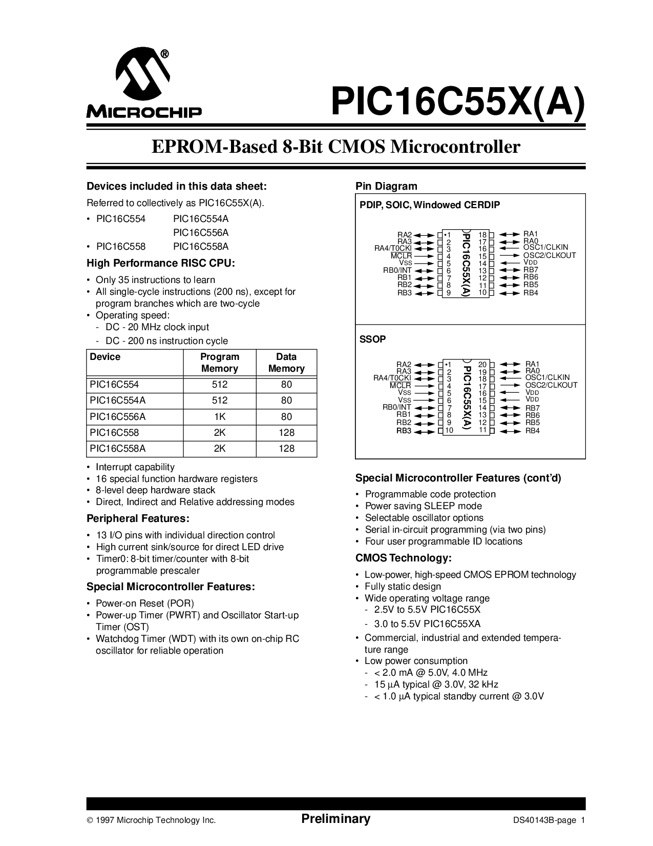 浏览型号PIC16C556A-04I/JW的Datasheet PDF文件第3页