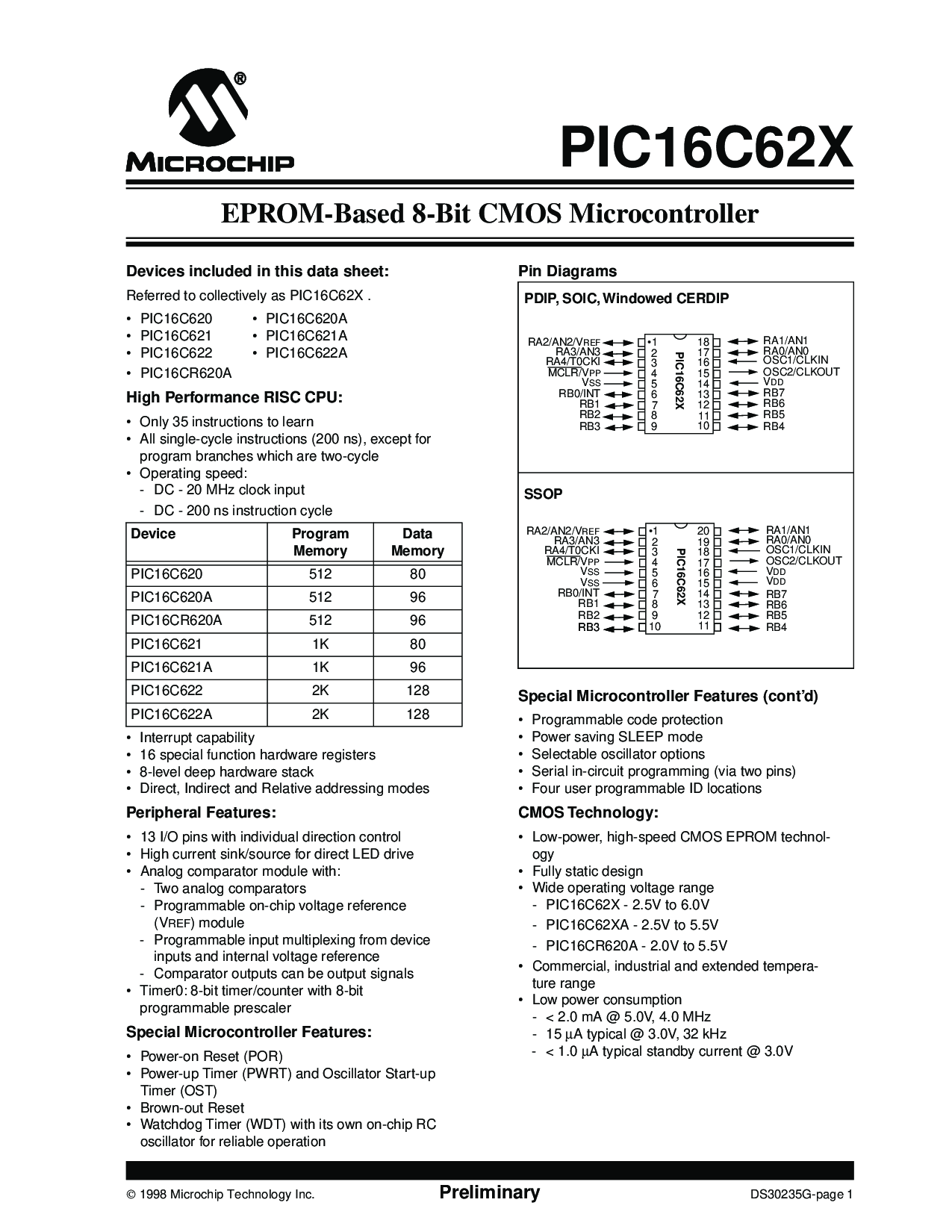 浏览型号PIC16LCR620A-20E/JW的Datasheet PDF文件第2页