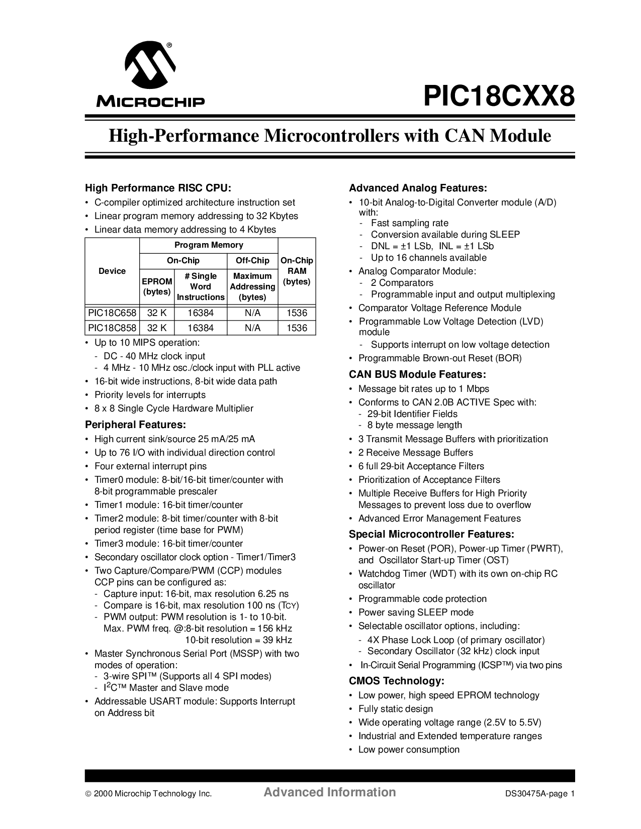 浏览型号PIC18C858-E/CL的Datasheet PDF文件第2页