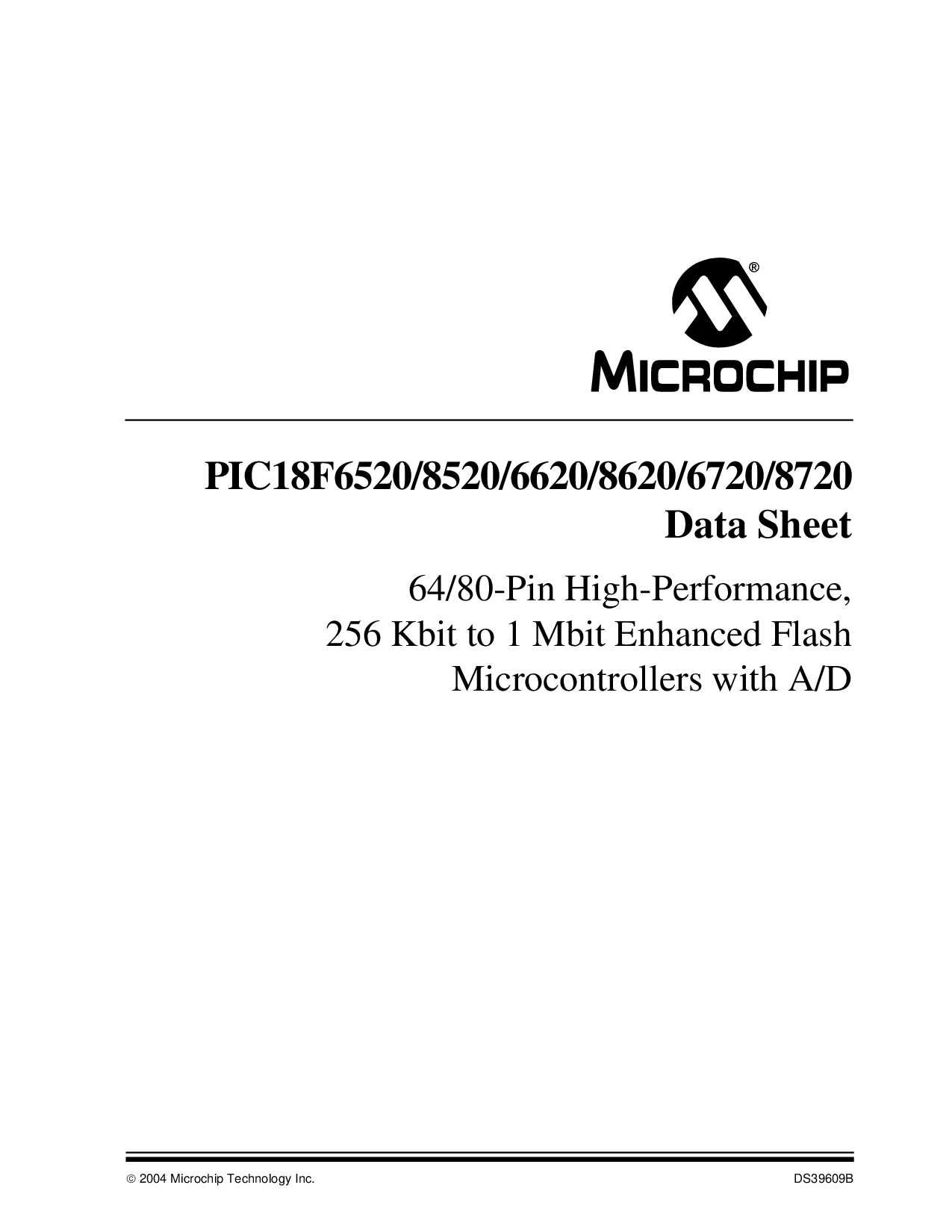 2004 微芯片 技术 公司 DS39609B pic18f6520/8520/6620/8620/6720/8720 数据 工作表 64/80-管脚 高-业绩, 256 kbit 至 1 mbit 增强型 闪光灯 微控制器 与 一个/d | |