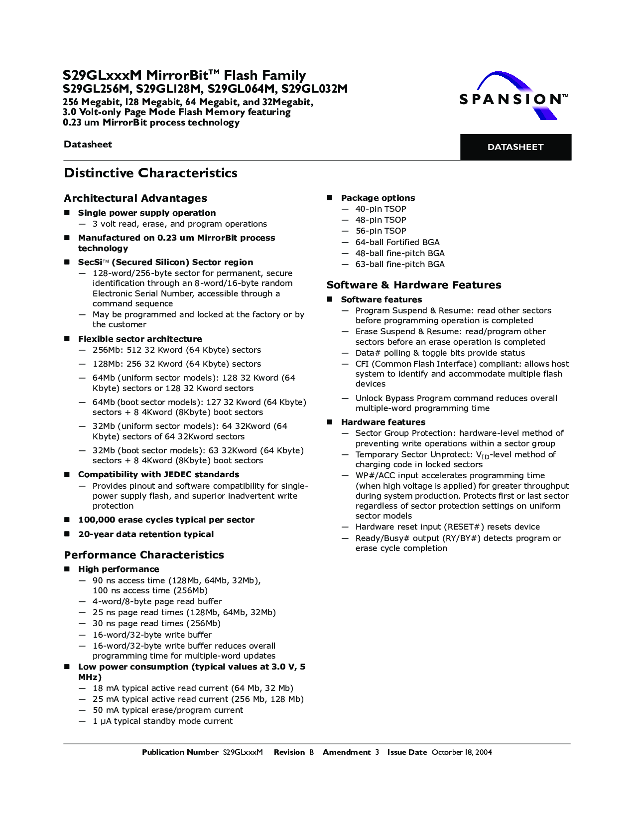 s29gl256m, s29gl128m, s29gl064m, s29gl032m