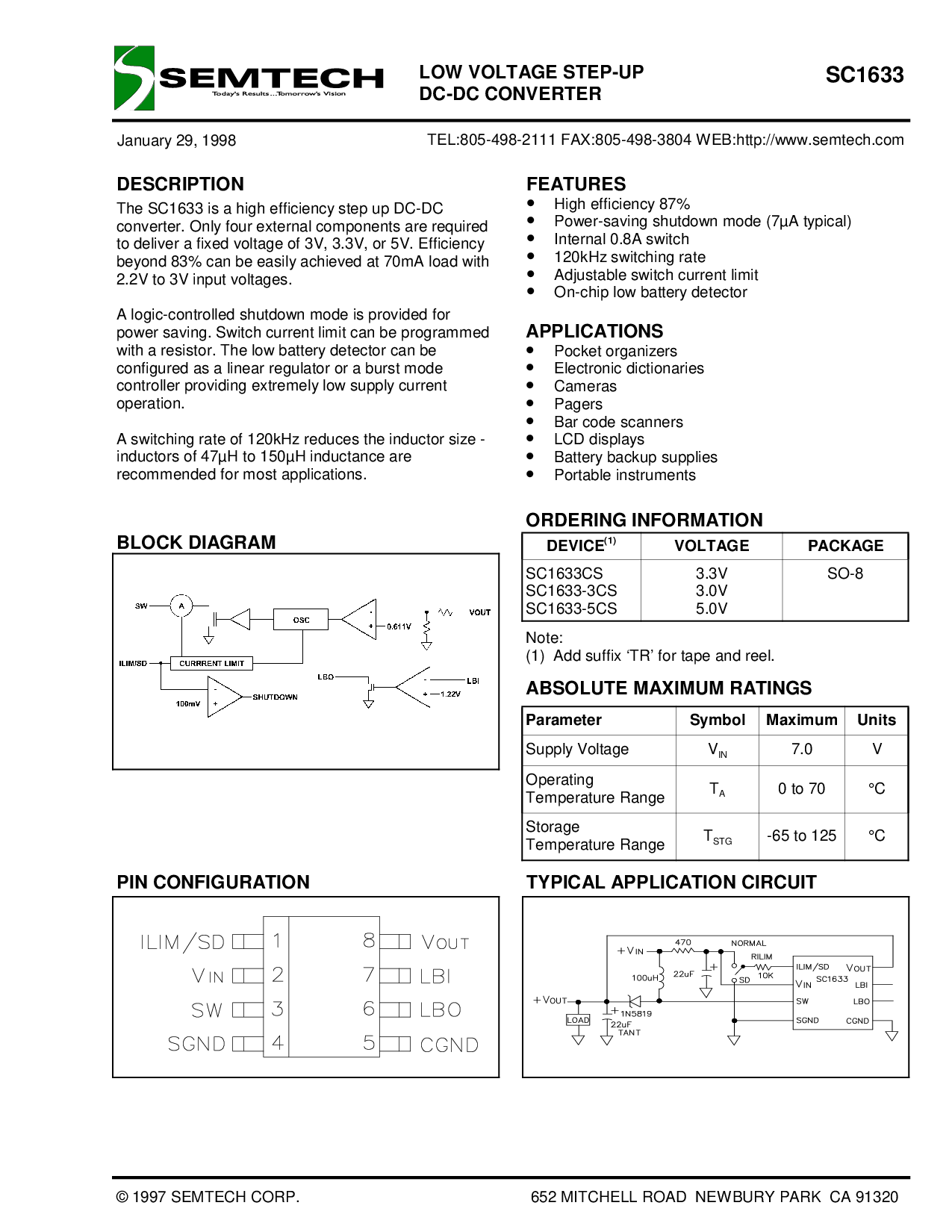 电话:805-498-2111 传真:805-498-3804 web:http://www.semtech.com