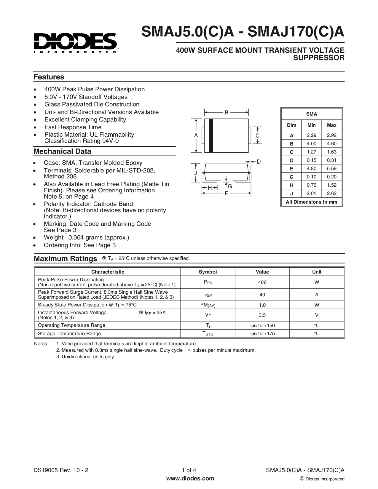 ds19005 rev. 10 - 2 1 的 4 smaj5.0(c)一个 - smaj170(c)一个