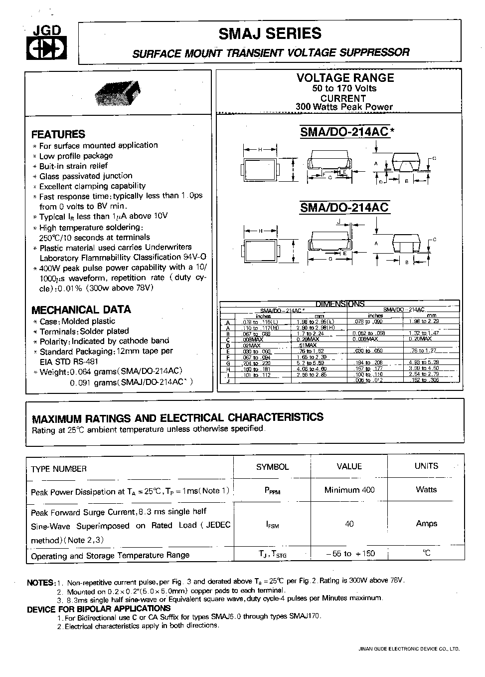 SURFACE MOUNT TRANSZORB⑩ TRANSIENT VOLTAGE SUPPRESSOR