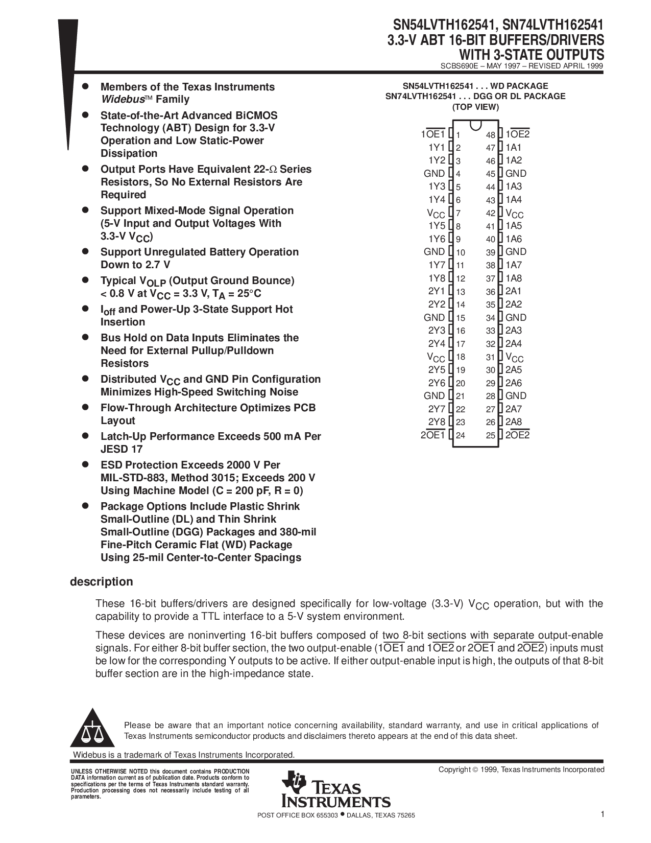 SN74LVTH162541 . . . dgg 或 dl 包装