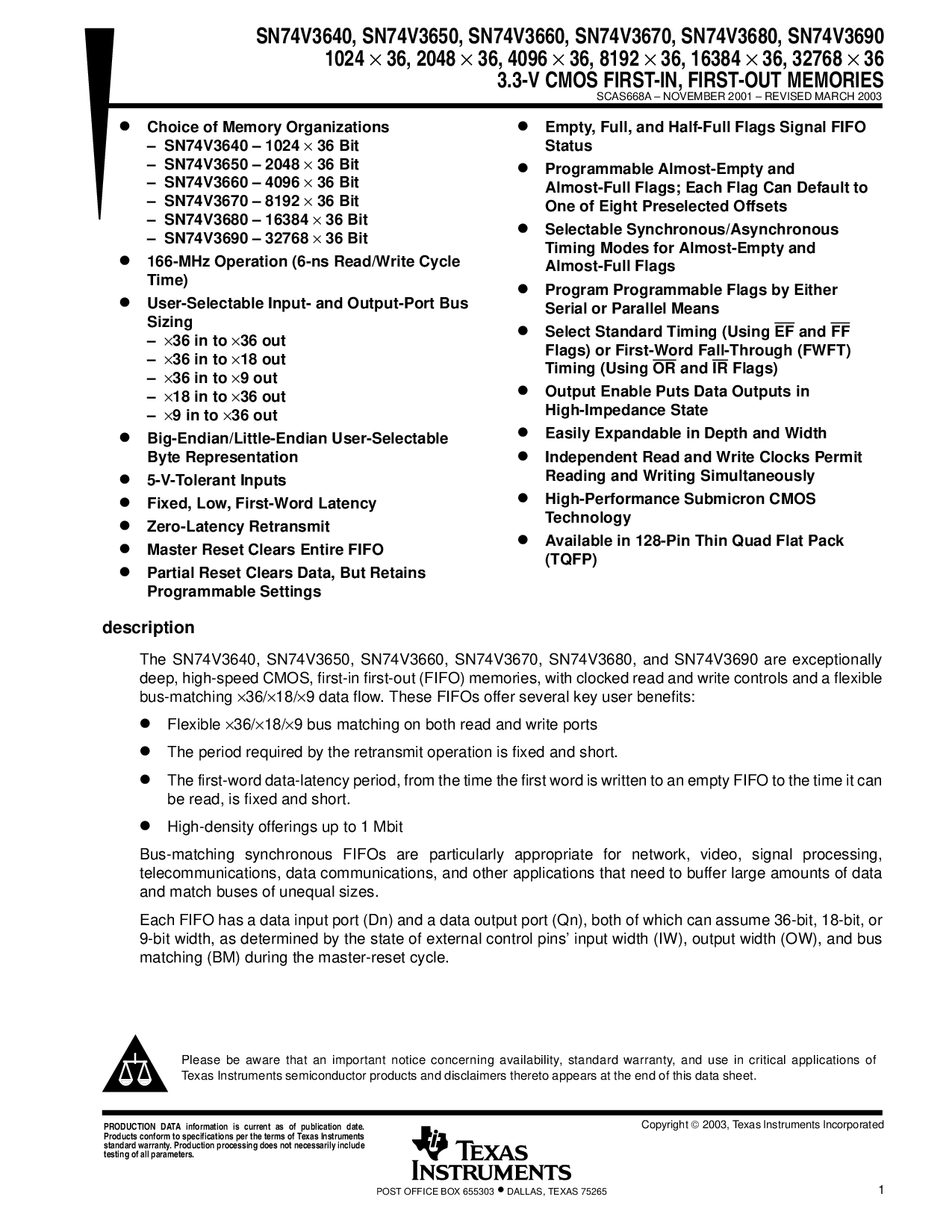 sn74v3640, sn74v3650, sn74v3660, sn74v3670, sn74v3680, sn74v3690