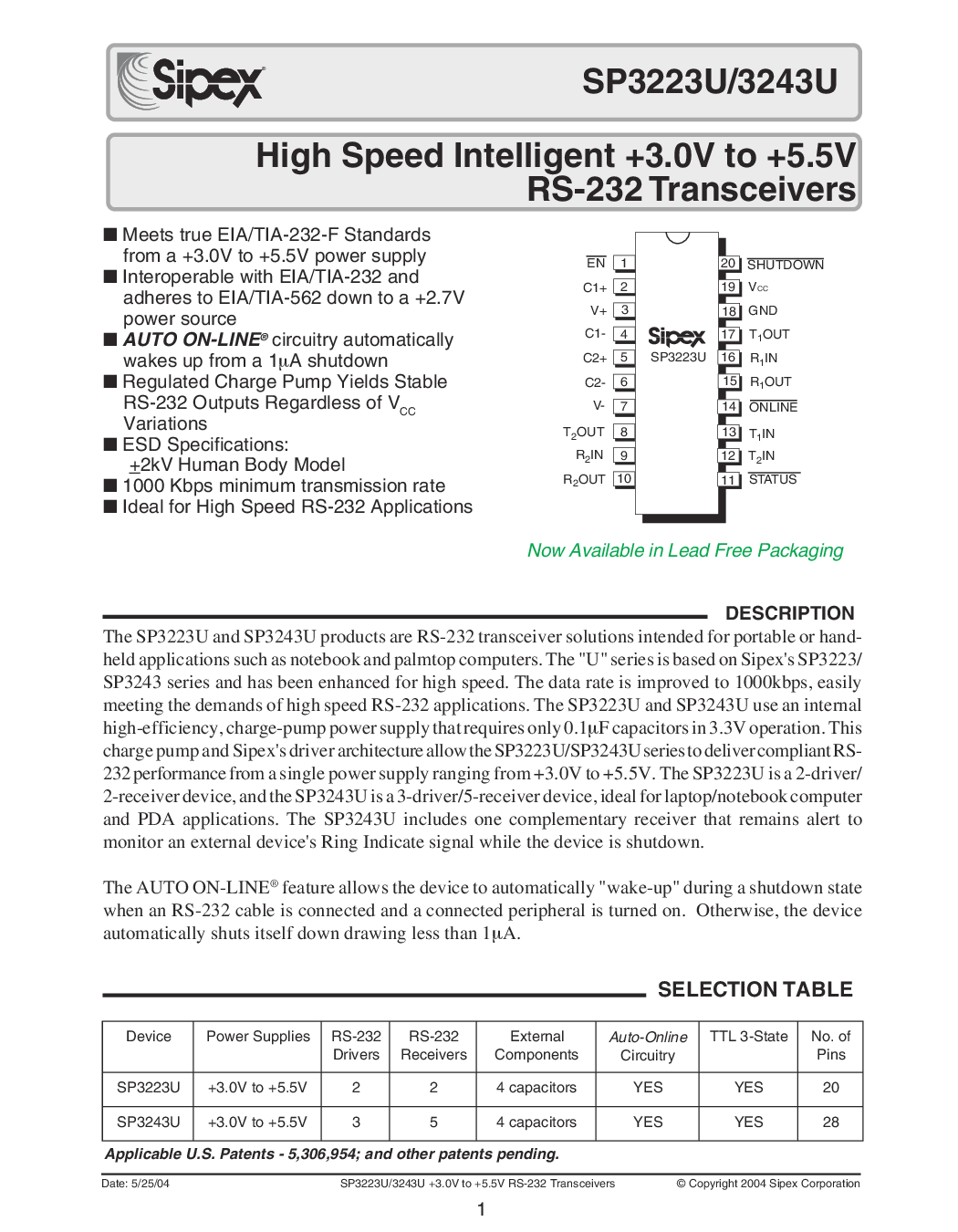 2-接收器 设备, 和 这 sp3243u 是 一个 3-驾驶员/5-接收器 设备, 理想 用于 laptop/notebook 计算机