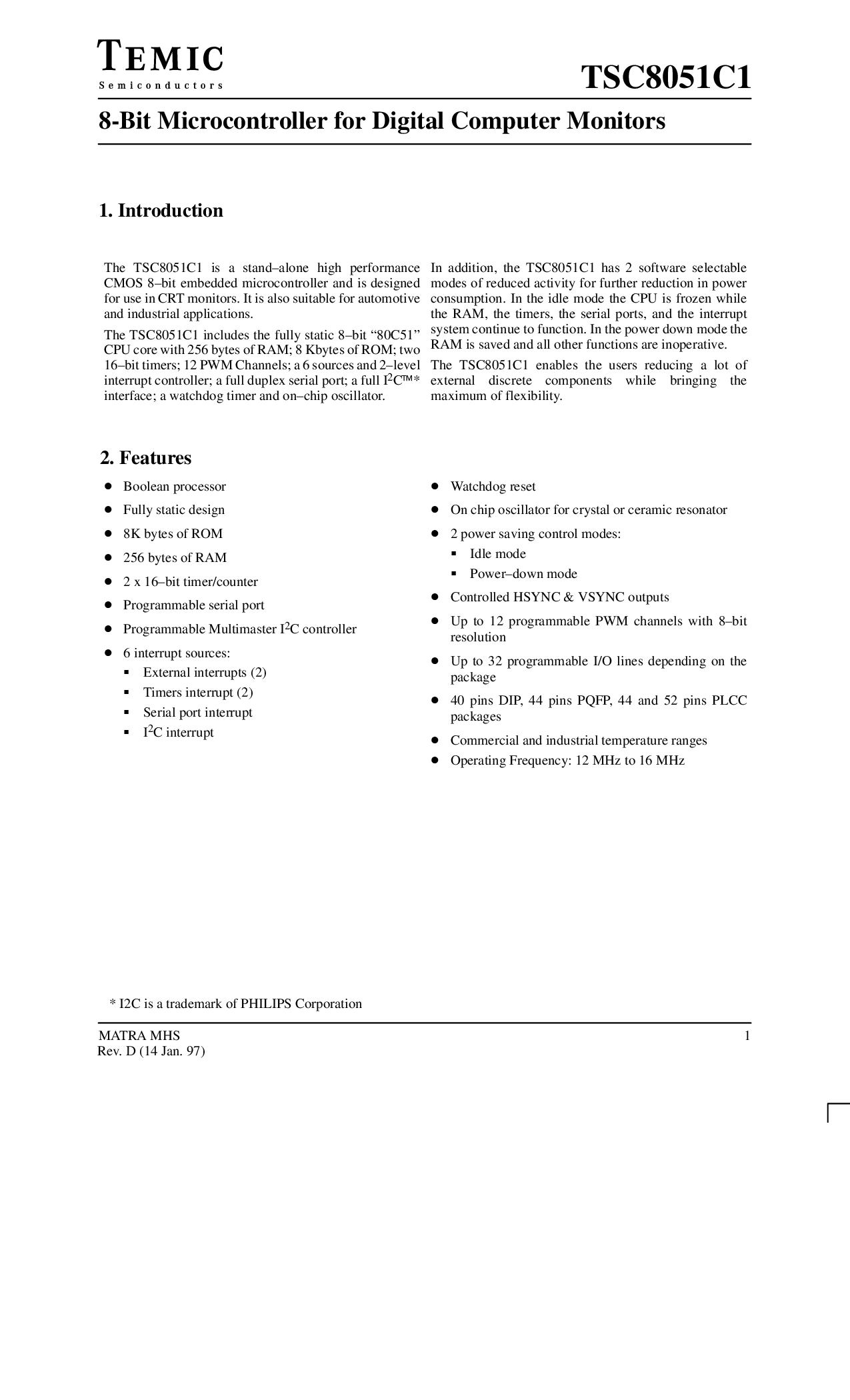 浏览型号TSC8051C1XXX-A-16CDB的Datasheet PDF文件第2页