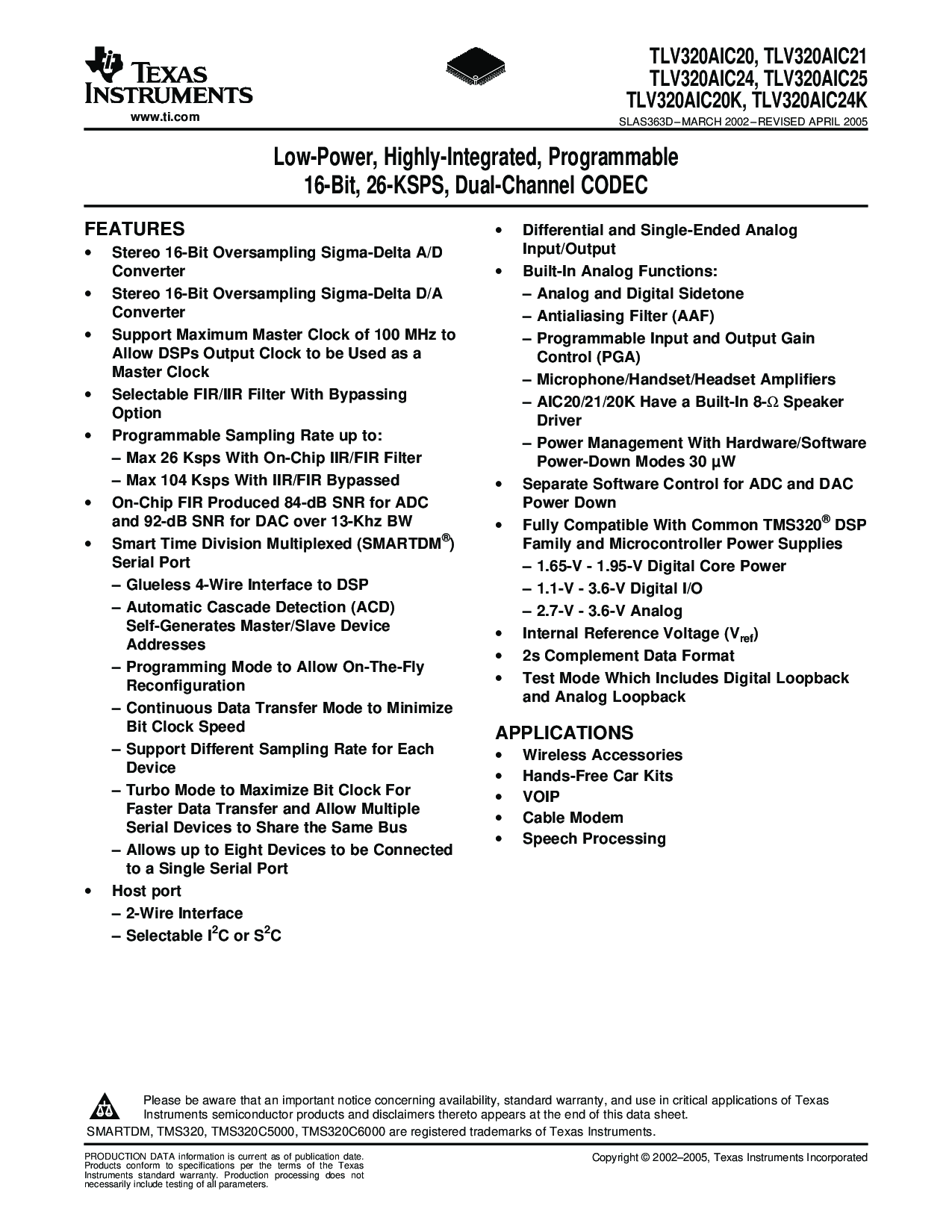 浏览型号TLV320AIC24KI的Datasheet PDF文件第2页