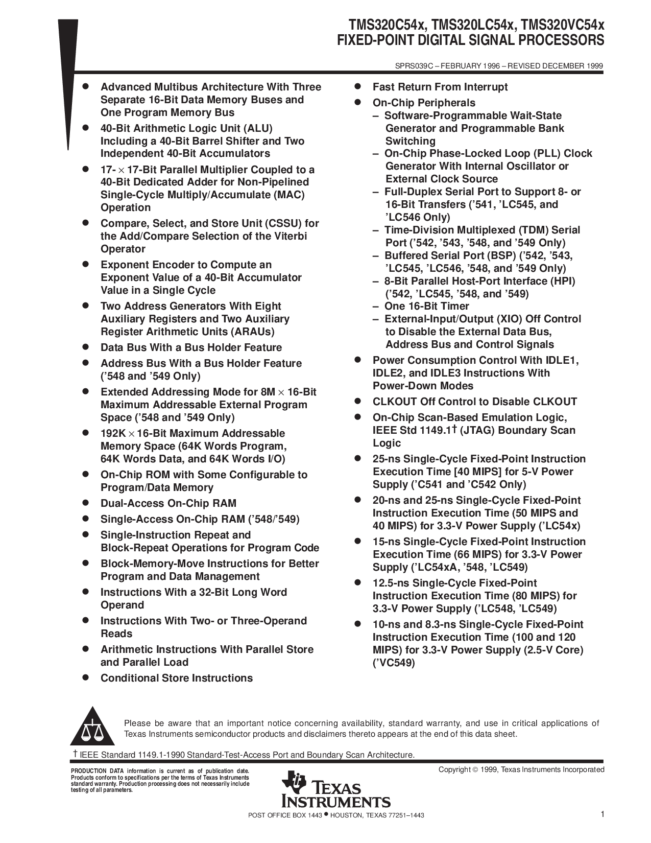 40 mips) 用于 3.3-v 电源 供应 (’lc54x)