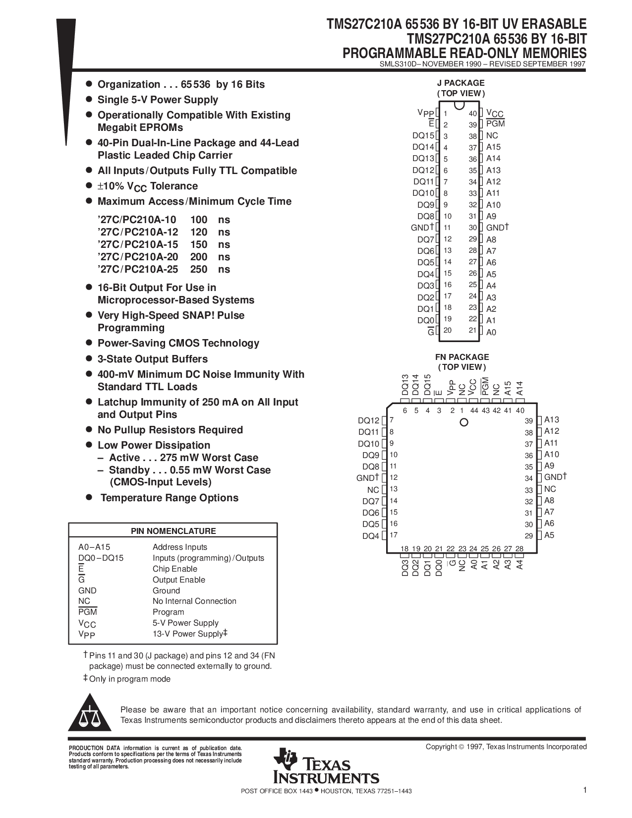 tms27c210a 65536 由 16-有点 uv 可擦除