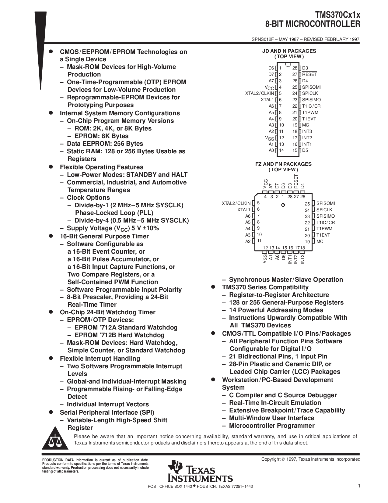 浏览型号TMS370C012A的Datasheet PDF文件第2页