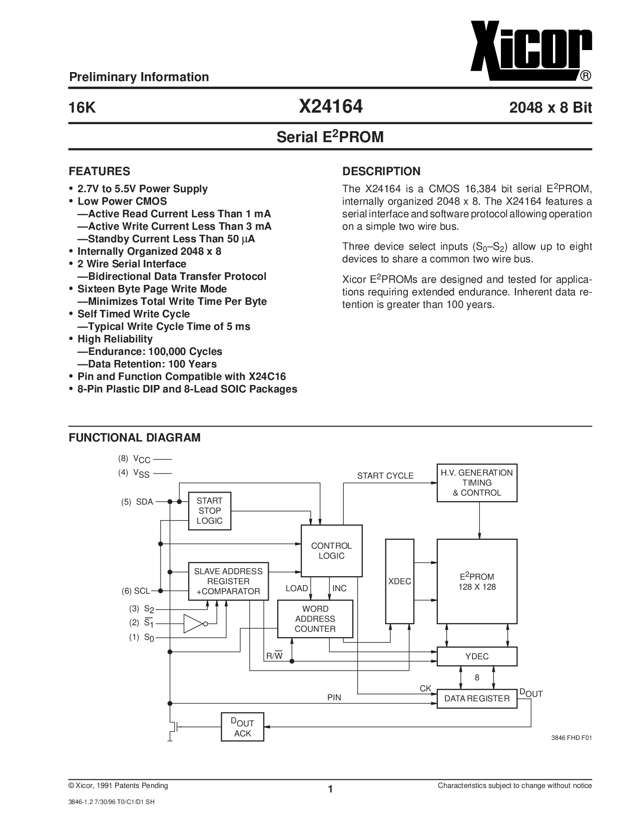 © xicor, 1991 专利 待定 特性 主题 至 变更 无 通知