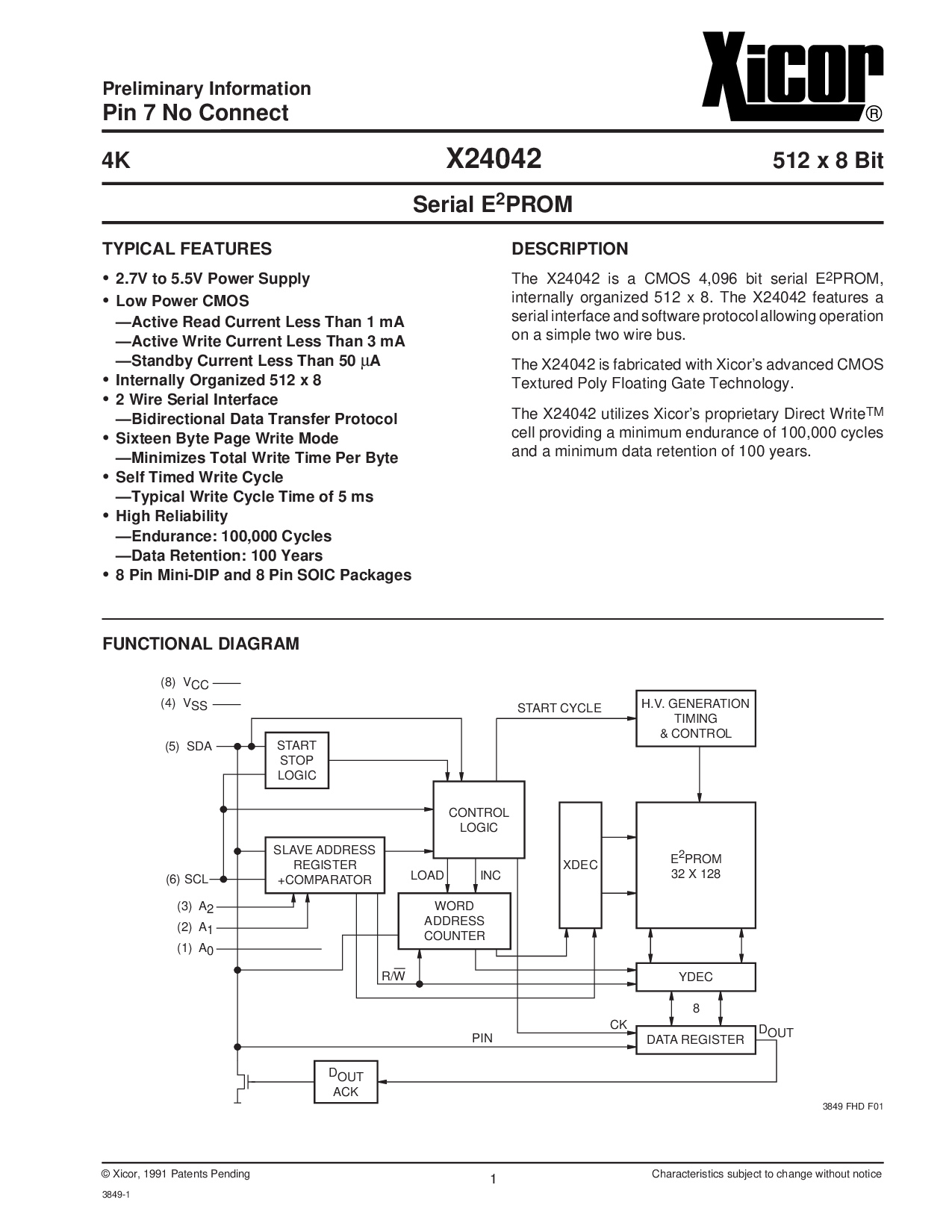 © xicor, 1991 专利 待定 特性 主题 至 变更 无 通知