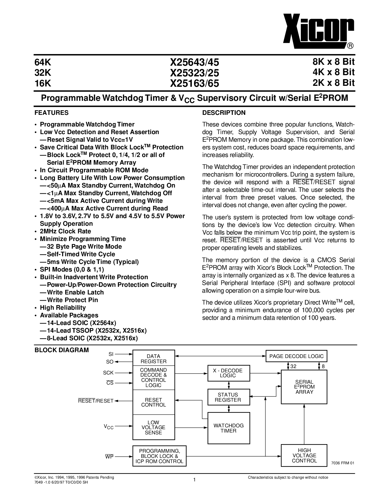 xicor, 公司 1994, 1995, 1996 专利 待定