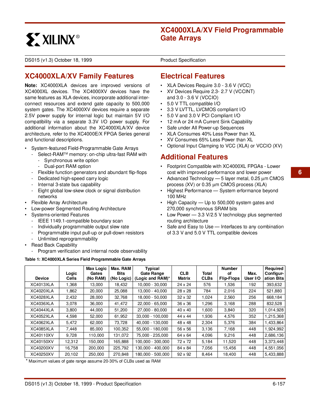 表 1: xc4000xla 系列 字段 可编程 闸门 阵列