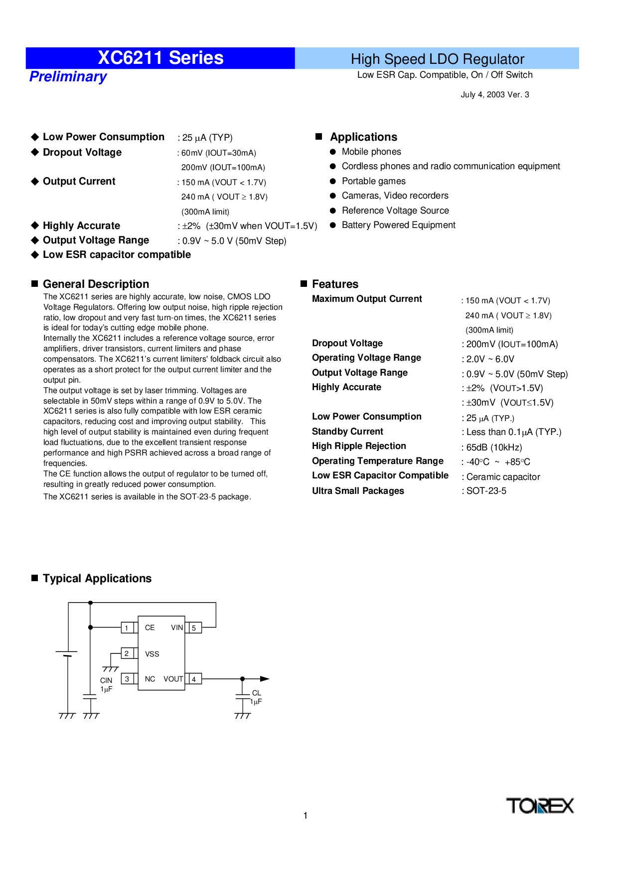 这 xc6211 系列 是 高度 准确, 低 噪声, cmos ldo