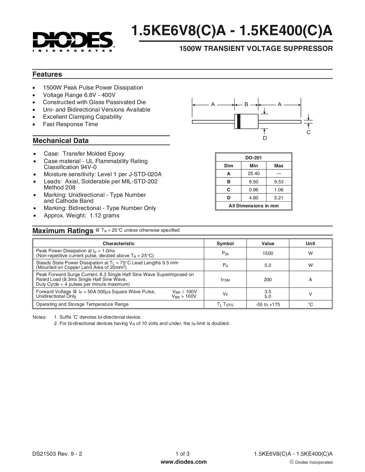 ds21503 rev. 9 - 2 1 的 3 1.5ke6v8(c)一个 - 1.5ke400(c)一个