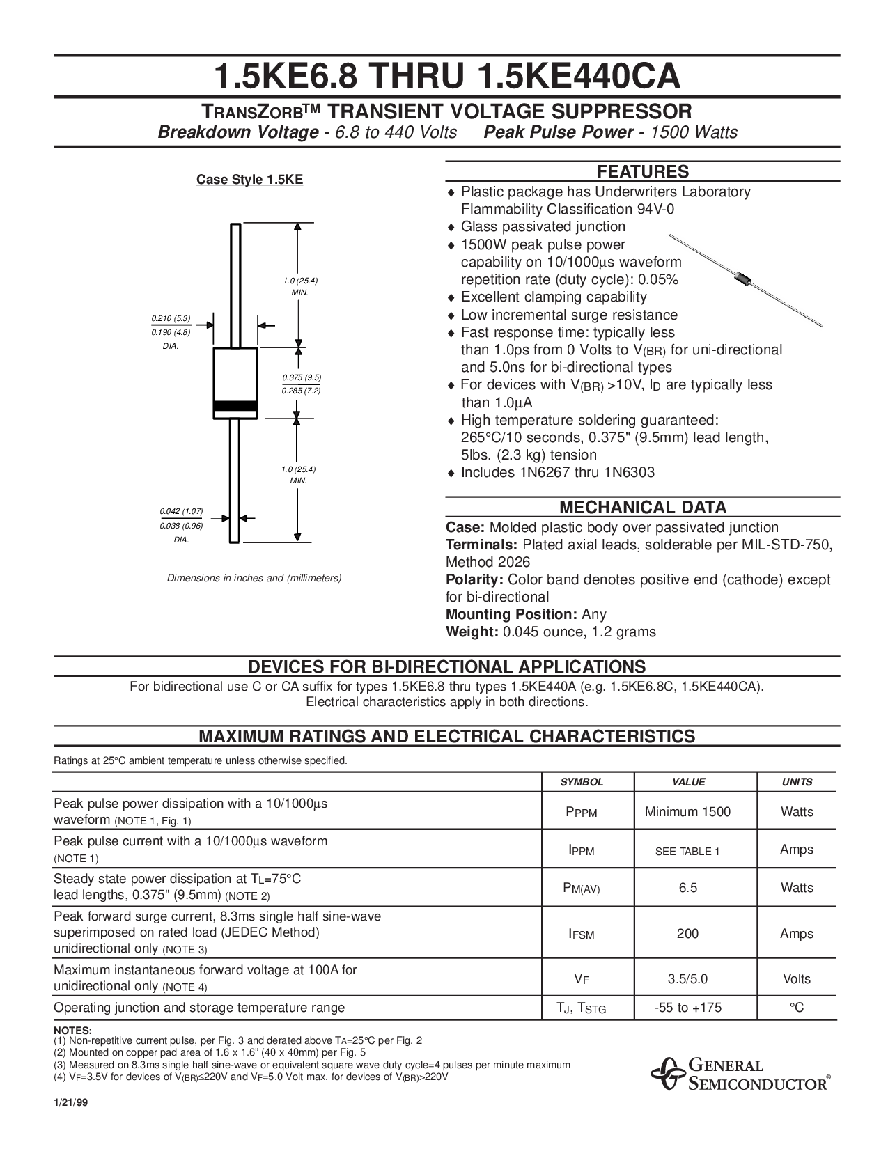 用于 双向 使用 c 或 ca 后缀 用于 类型 1.5ke6.8 直通 类型 1.5ke440a (e?.g. 1.5ke6.8c, 1.5ke440ca).