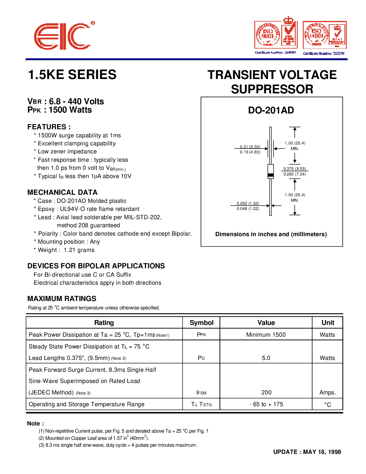 1.5ke 系列 瞬态 电压