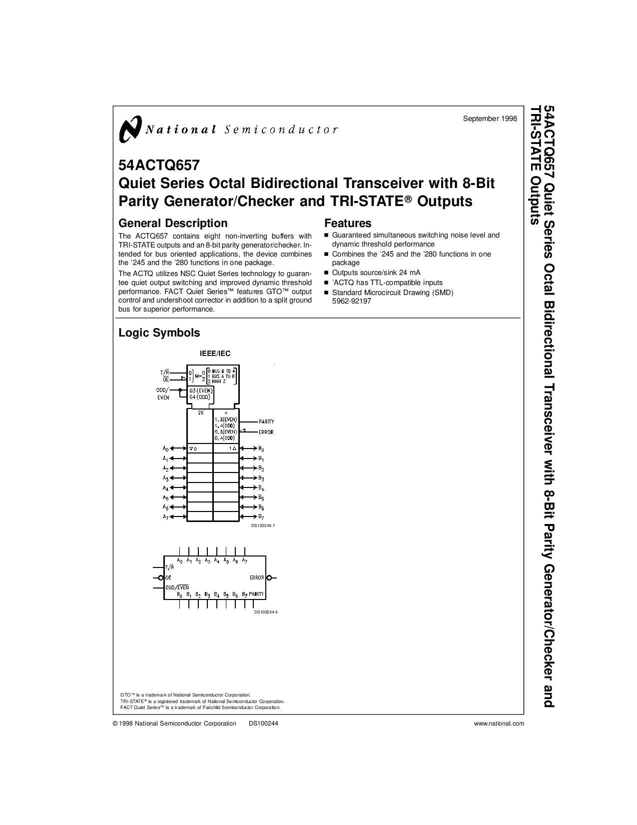 54ACTQ657 安静 系列 八进制 双向 收发器 与 8-有点 奇偶校验 发电机/检查器 和