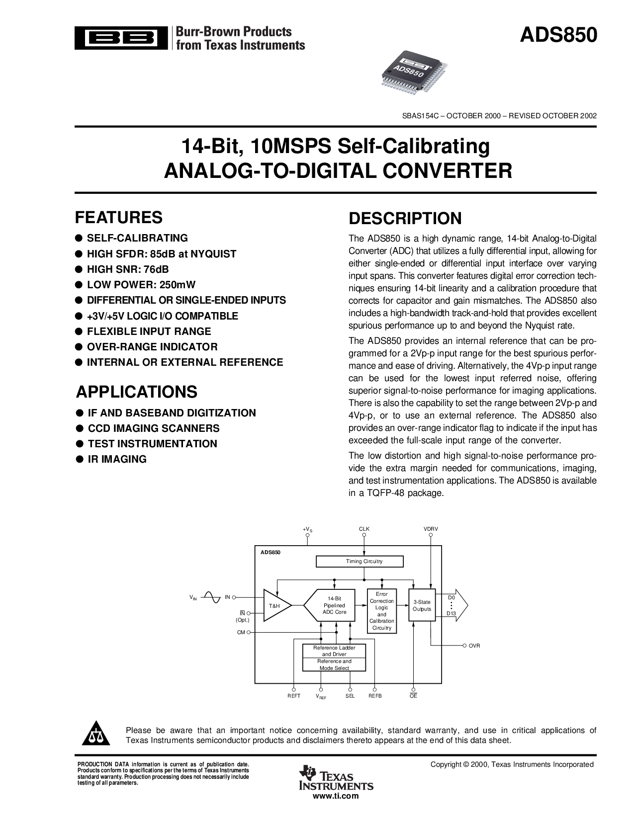浏览型号ADS850Y/250的Datasheet PDF文件第2页