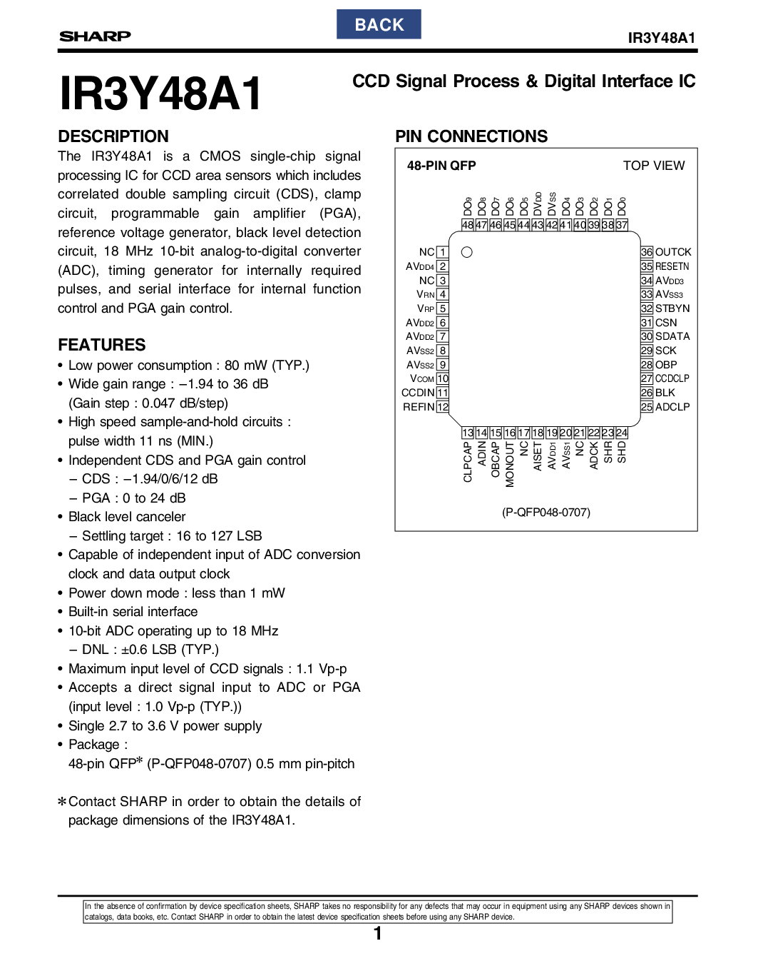 这 IR3Y48A1 是 一个 CMOS 单芯片 信号