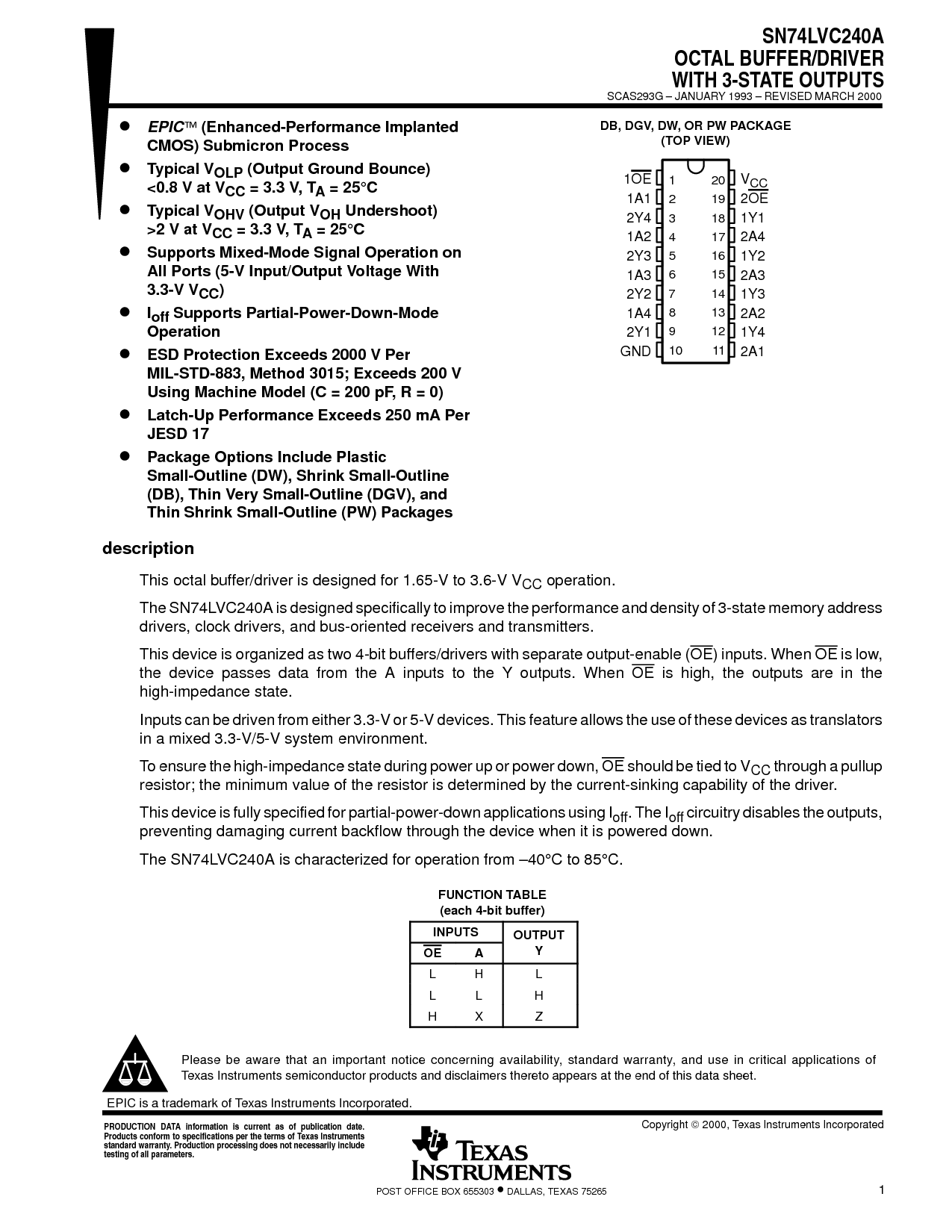 这 sn74lvc240a 是 设计 具体而言 至 改善 这 业绩 和 密度 的 3-州 记忆 地址