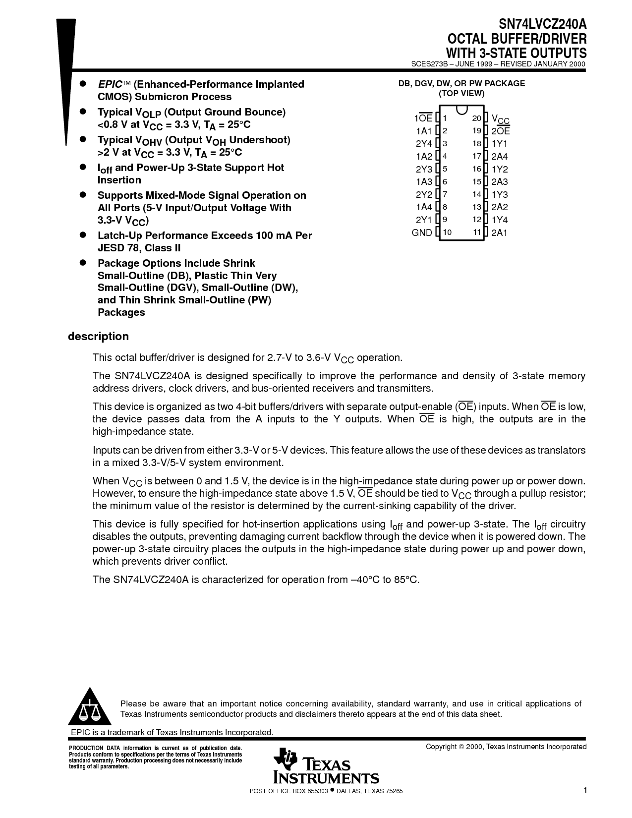 浏览型号SN74LVCZ240ADB的Datasheet PDF文件第2页