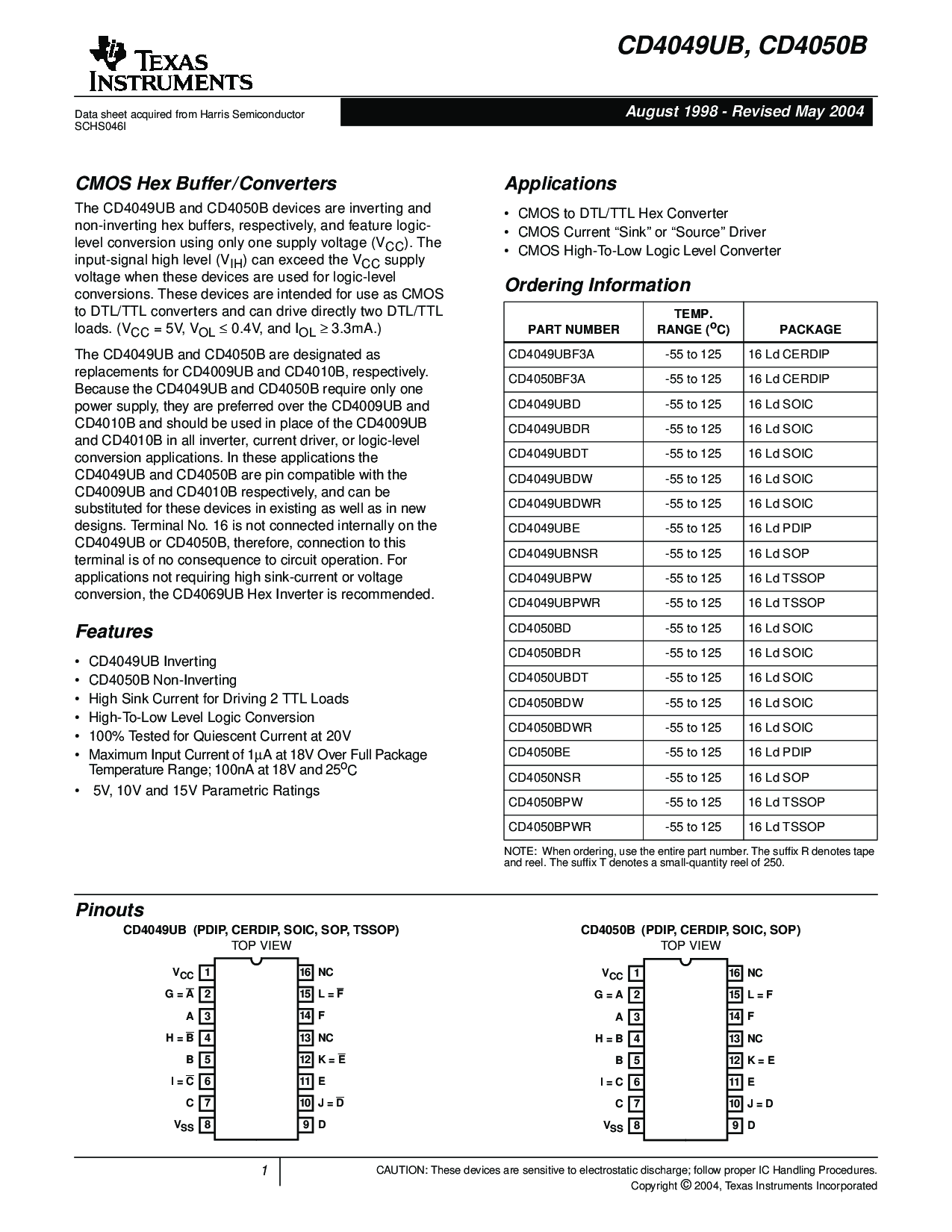 CD4049UB (pdip, cerdip, soic, sop, tssop)