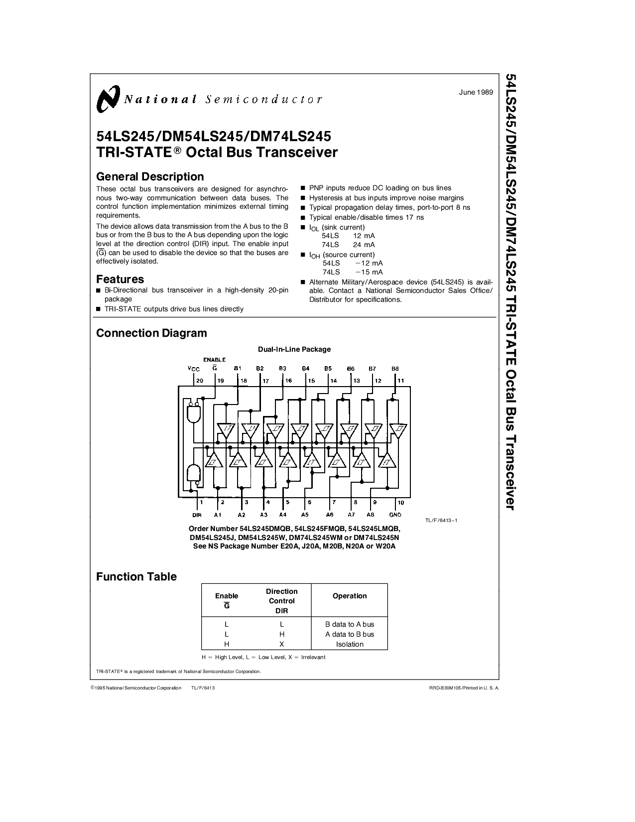 54LS245DM54LS245DM74LS245 三态 八进制 总线 收发器