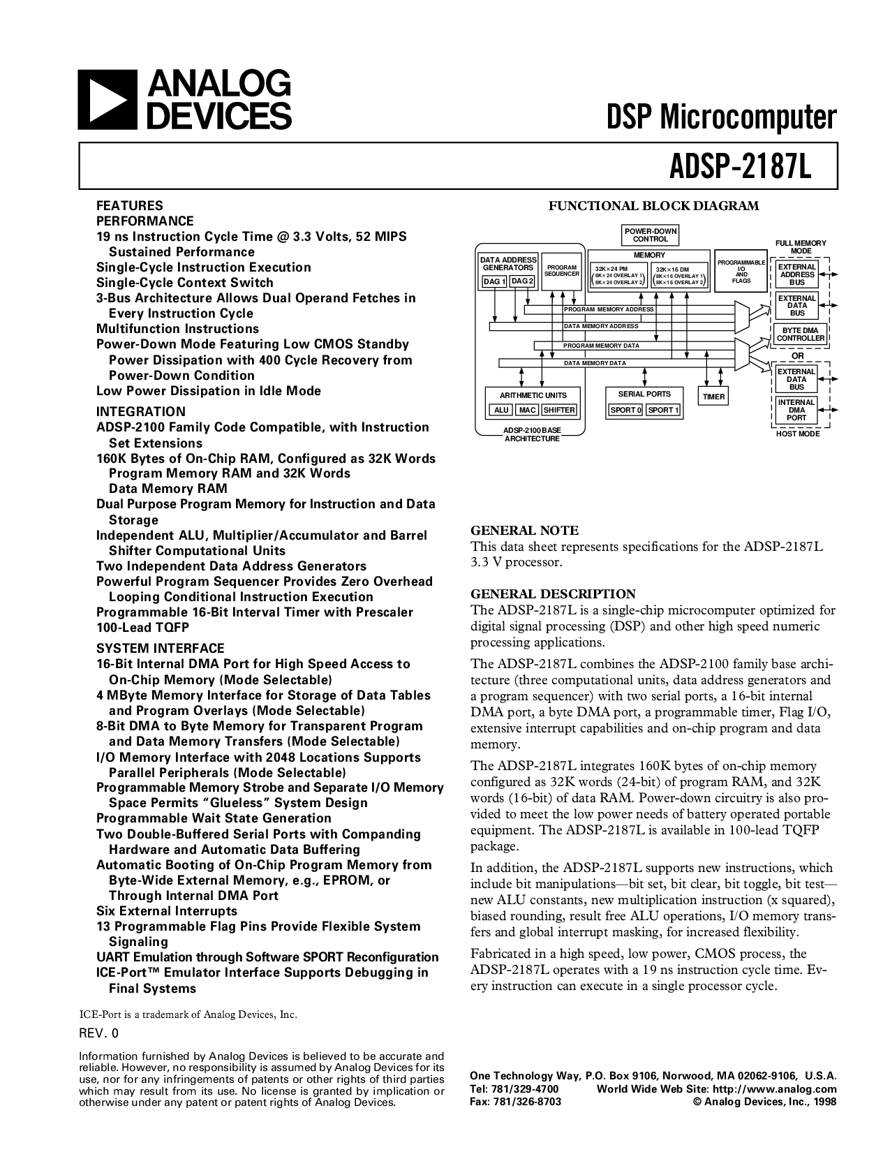 浏览型号ADSP-2187LBST-160的Datasheet PDF文件第2页