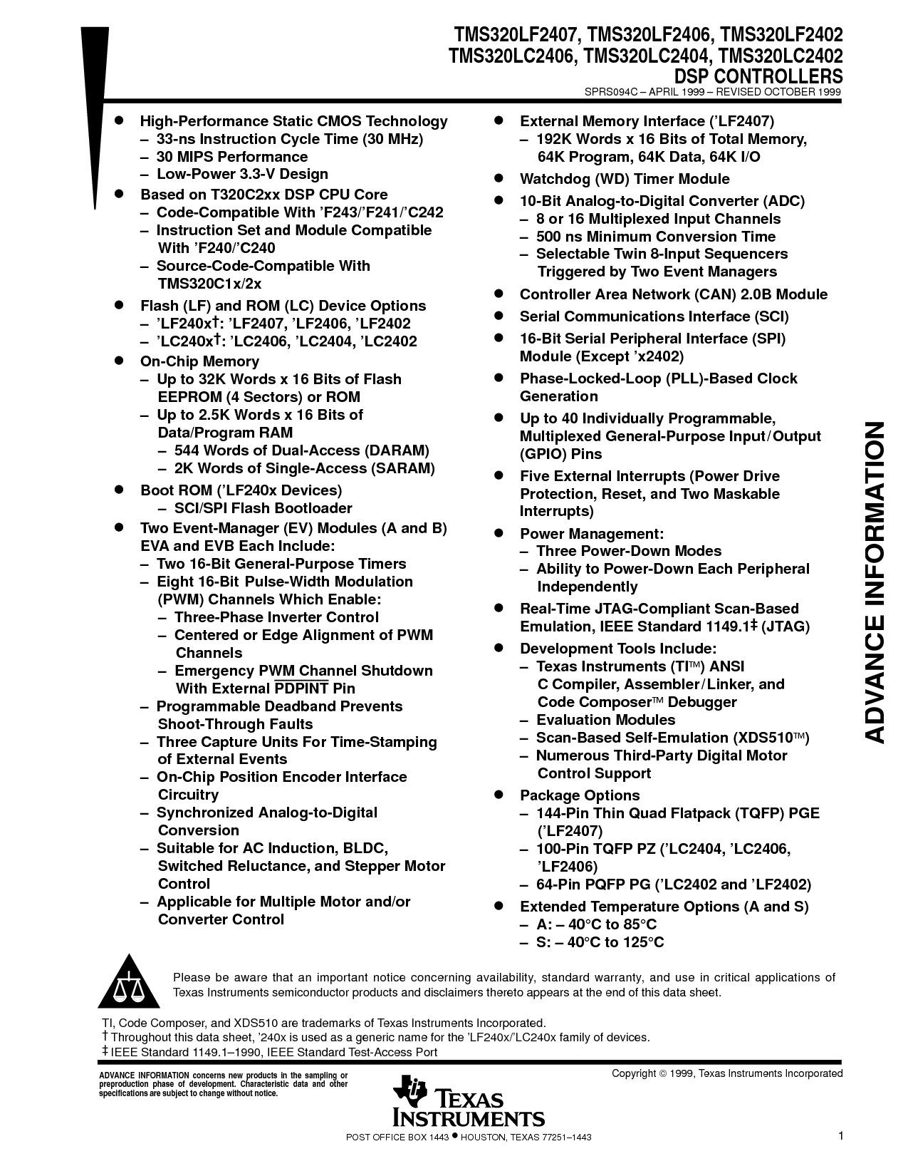 浏览型号TMS320LC2406PGE的Datasheet PDF文件第2页