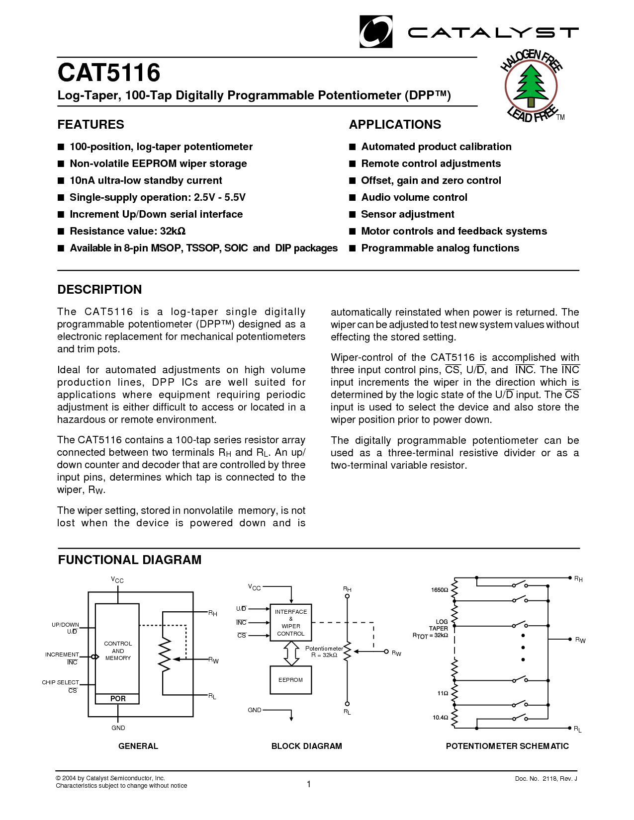 浏览型号CAT5116PISOIC的Datasheet PDF文件第2页
