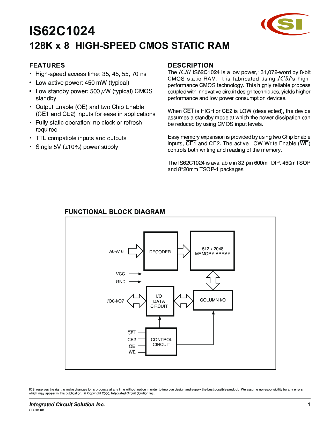 is62c1024 是 一个 低 电源,131,072-字 由 8-有点