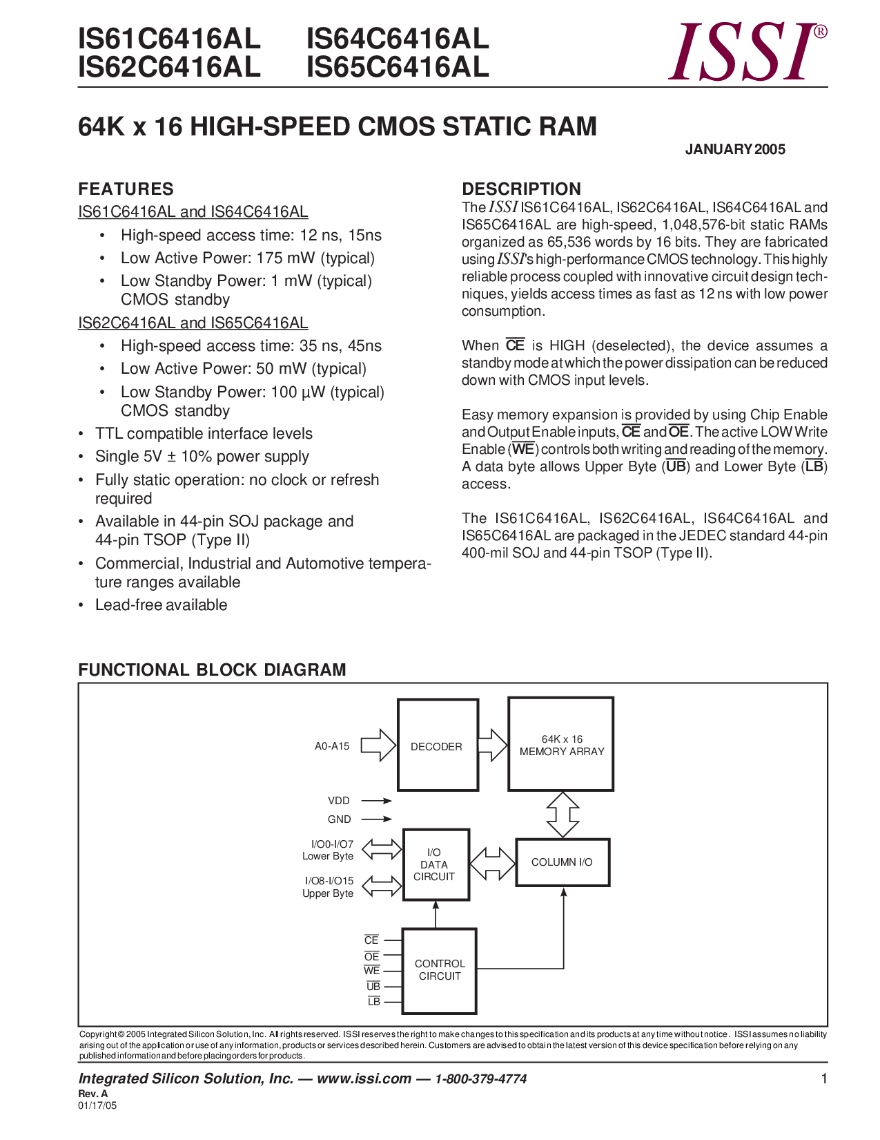 is65c6416al 是 高-速度, 1,048,576-有点 静态 rams