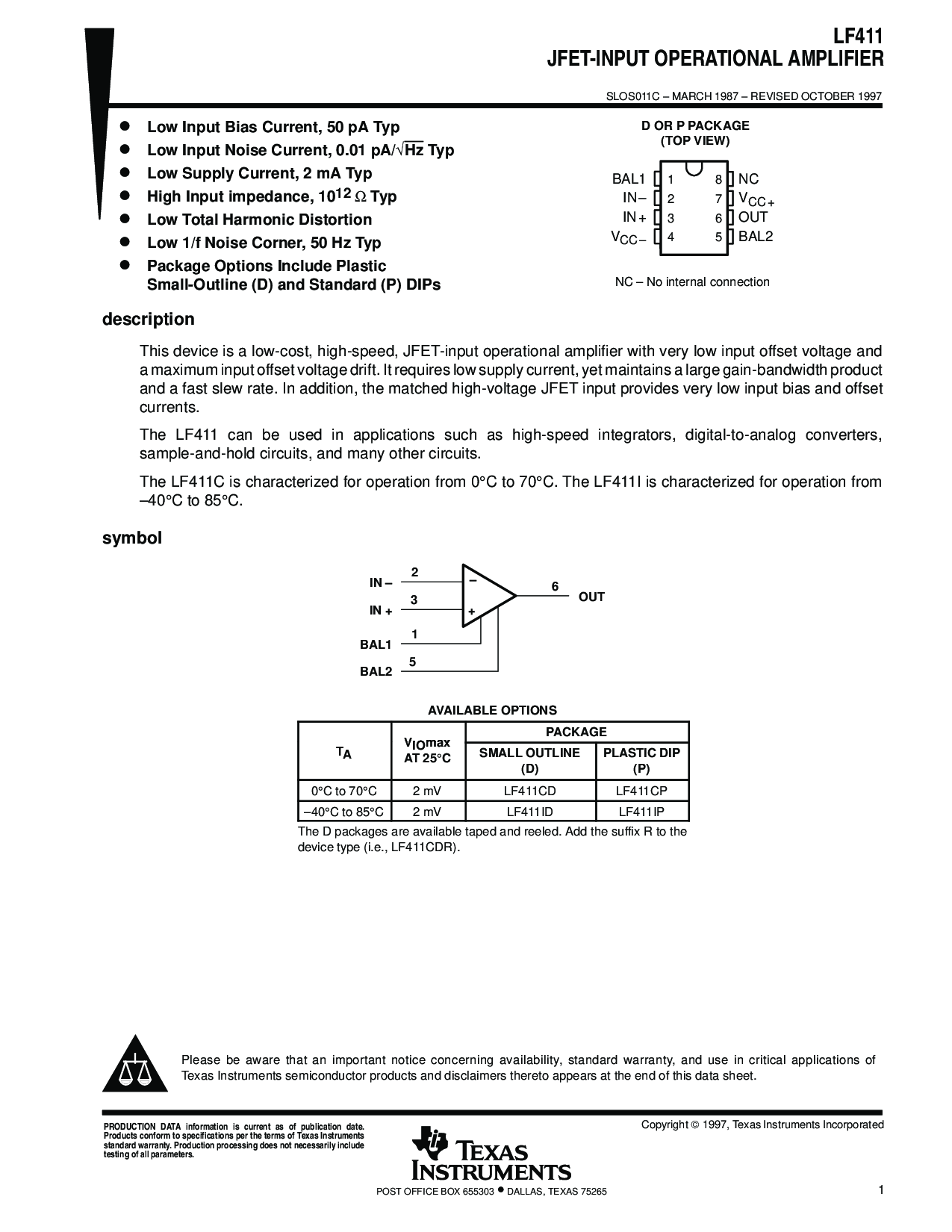浏览型号LF411CPE4的Datasheet PDF文件第6页
