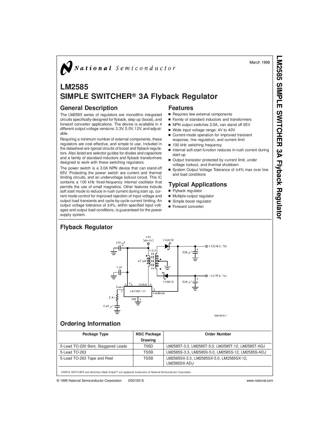 5-铅 至-263 胶带 和 卷轴 TS5B lm2585sx-3.3, lm2585sx-5.0, lm2585sx-12,