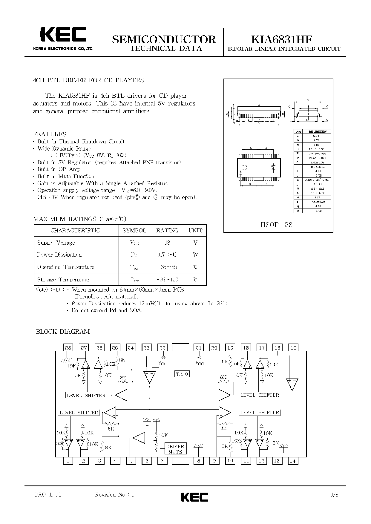 BIPOLAR LINEAR INTEGRATED CIRCUIT (4CH BTL DRIVER FOR CD PLAYERS)