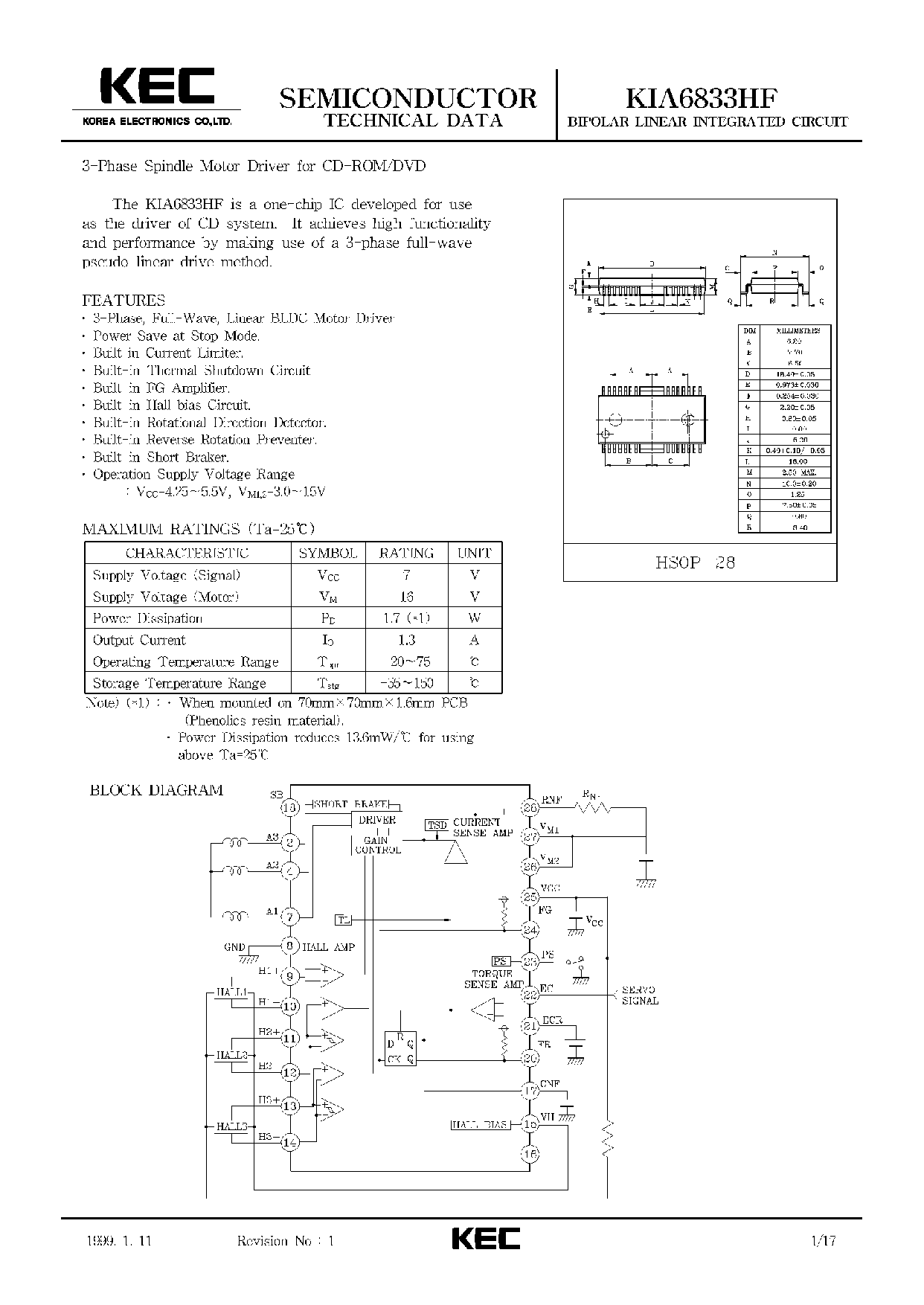 BIPOLAR LINEAR INTEGRATED CIRCUIT(3-PHASE SPINDLE MOTOR DRIVER FOR CD-ROM/DVD)